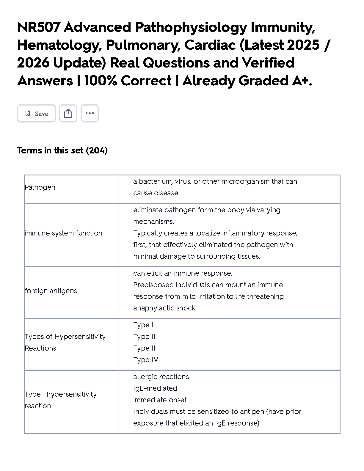 Master the complexities of NR 507 Advanced Pathophysiology with our latest 2025/2026 study guide. This comprehensive resource provides a full set of real exam questions and 100% correct, verified answers, covering the crucial topics of Immunity, Hematology, Pulmonary, and Cardiac systems. Designed to help you pass your exams on the first attempt, this guide has been proven to help students achieve A+ grades. Stop stressing and start studying smarter with this essential tool for success in your advanced nursing studies.