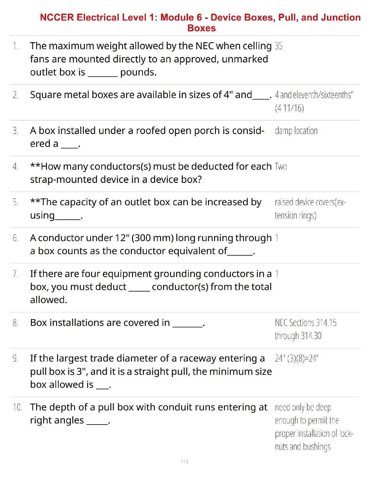 NCCER Electrical Level 1, 11th Edition by NCCER | Module 6: Device Boxes, Pull, and Junction Boxes Test Bank with Verified Solutions