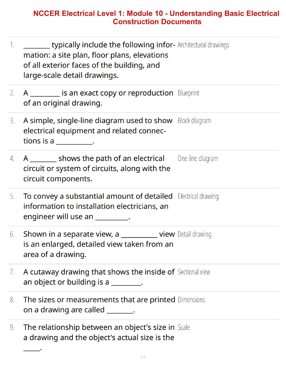 Comprehensive Test Bank for NCCER Electrical Level 1, 11th Edition by NCCER - Module 10: Understanding Basic Electrical Construction Documents