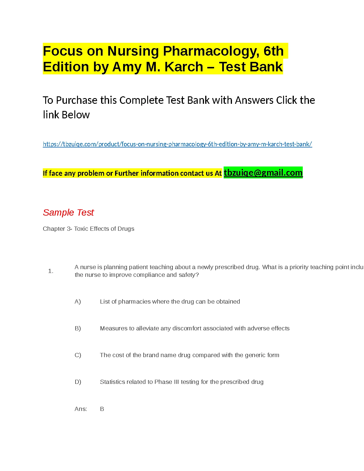 Test Bank For Focus on Nursing Pharmacology, 6th Edition by Amy M. Karch. DOWNLOAD on www.hackedexams.com INSTANTLY.