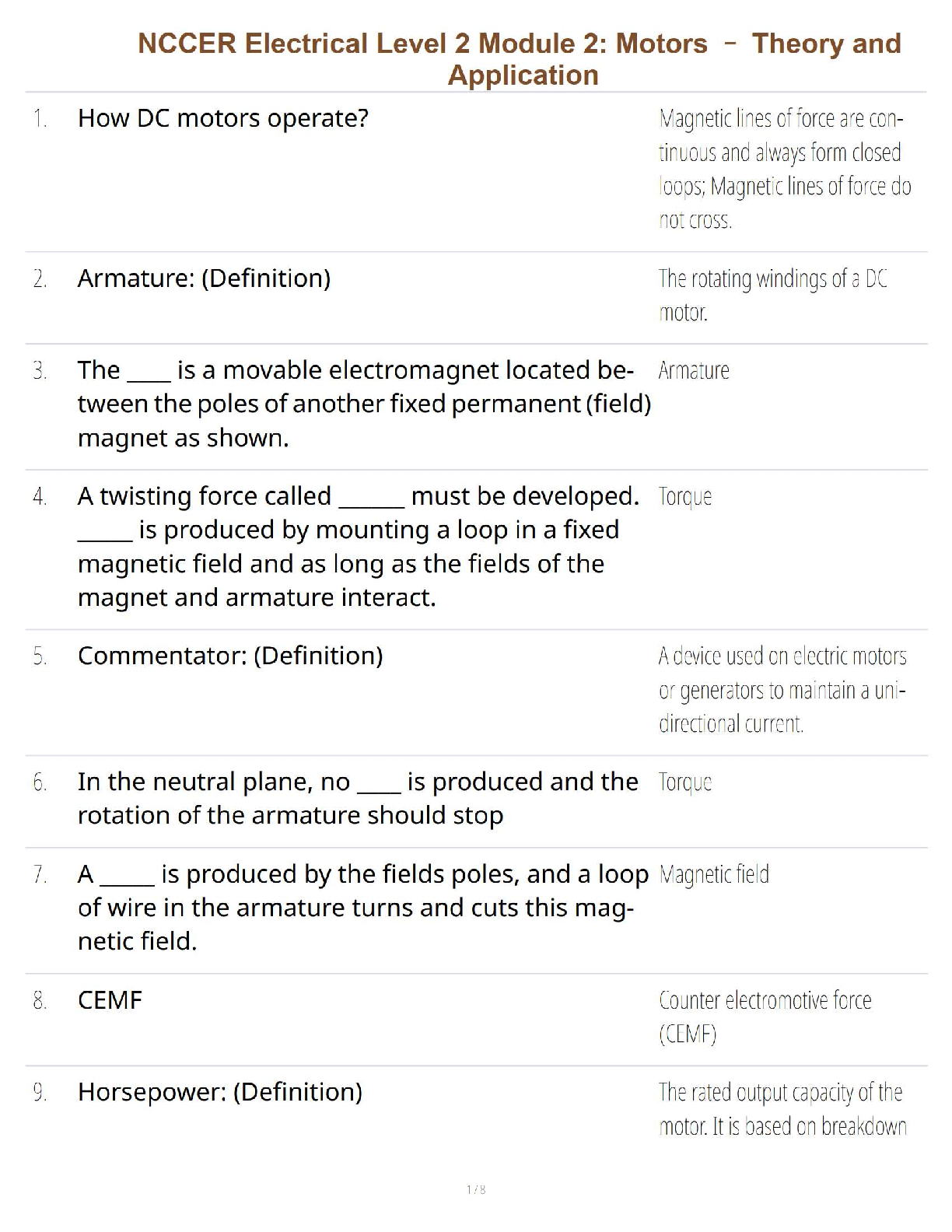 Unlock success in your electrical studies with the official Test Bank for NCCER Electrical Level 2, 11th Edition. This comprehensive resource is tailored for Module 2: Motors – Theory and Application, providing a complete set of exam-style questions with verified answers. Deepen your understanding of essential concepts like DC motor operation, armature, torque, commutators, and CEMF. This study guide is expertly designed to help you master the material, pass your exams confidently on the first attempt, and advance your career as a skilled electrician.