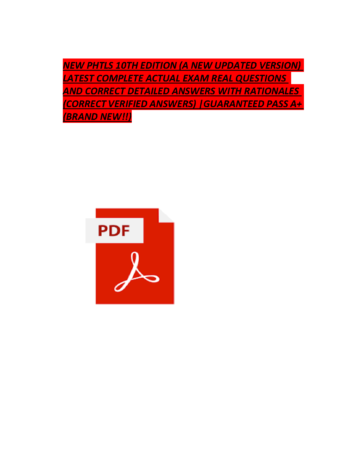 Achieve an A+ on your PHTLS exam with confidence using the complete, brand-new test bank for the 10th Edition of NAEMT's Prehospital Trauma Life Support. This essential resource contains a comprehensive collection of the latest actual exam questions, each accompanied by a correct, verified answer and a detailed rationale. By studying with these materials, you will not only memorize the answers but also deeply understand the core concepts of prehospital trauma care. This test bank is the ultimate tool to help you prepare efficiently, pass your certification exam on the first attempt, and master the skills needed in the field.
