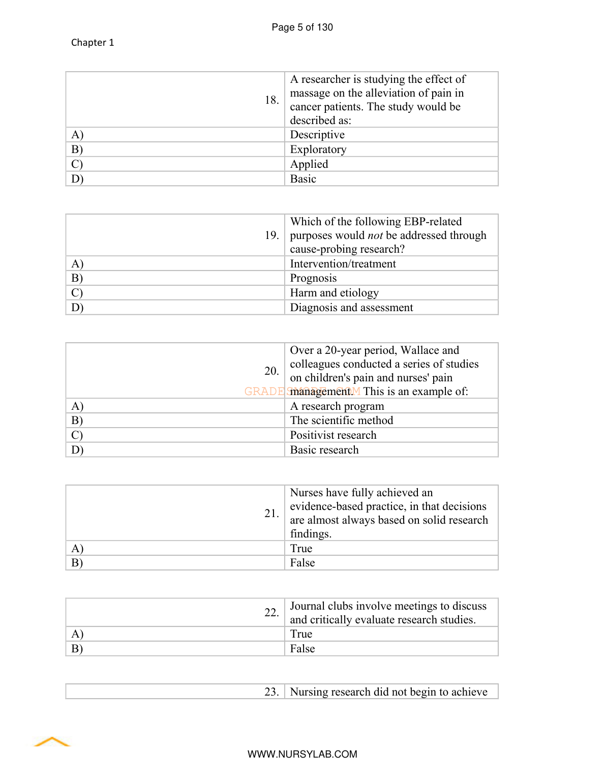 Test Bank for Essentials of Nursing Research: Appraising Evidence for Nursing Practice, 10th Edition by Denise F. Polit & Cheryl Tatano Beck