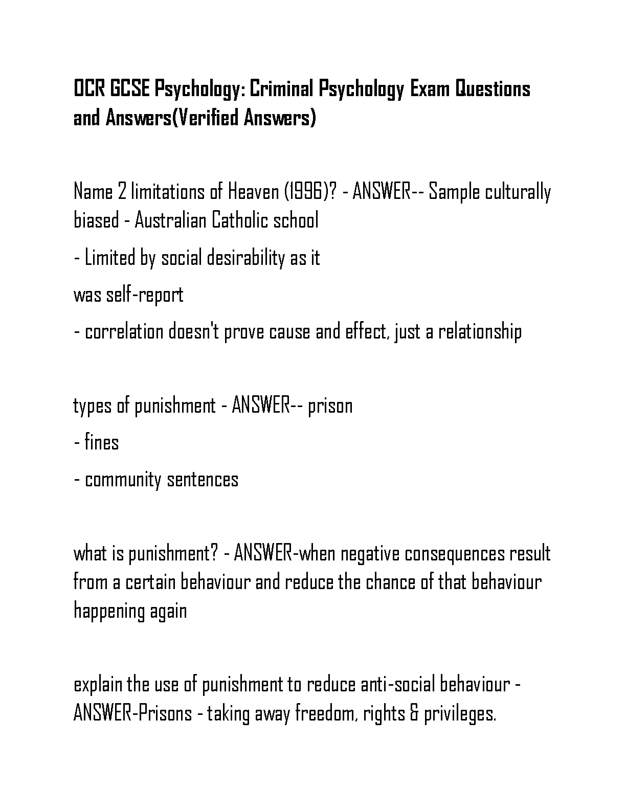Master OCR GCSE Criminal Psychology 2025/2026: Verified Exam Questions & Answers to Pass First Time