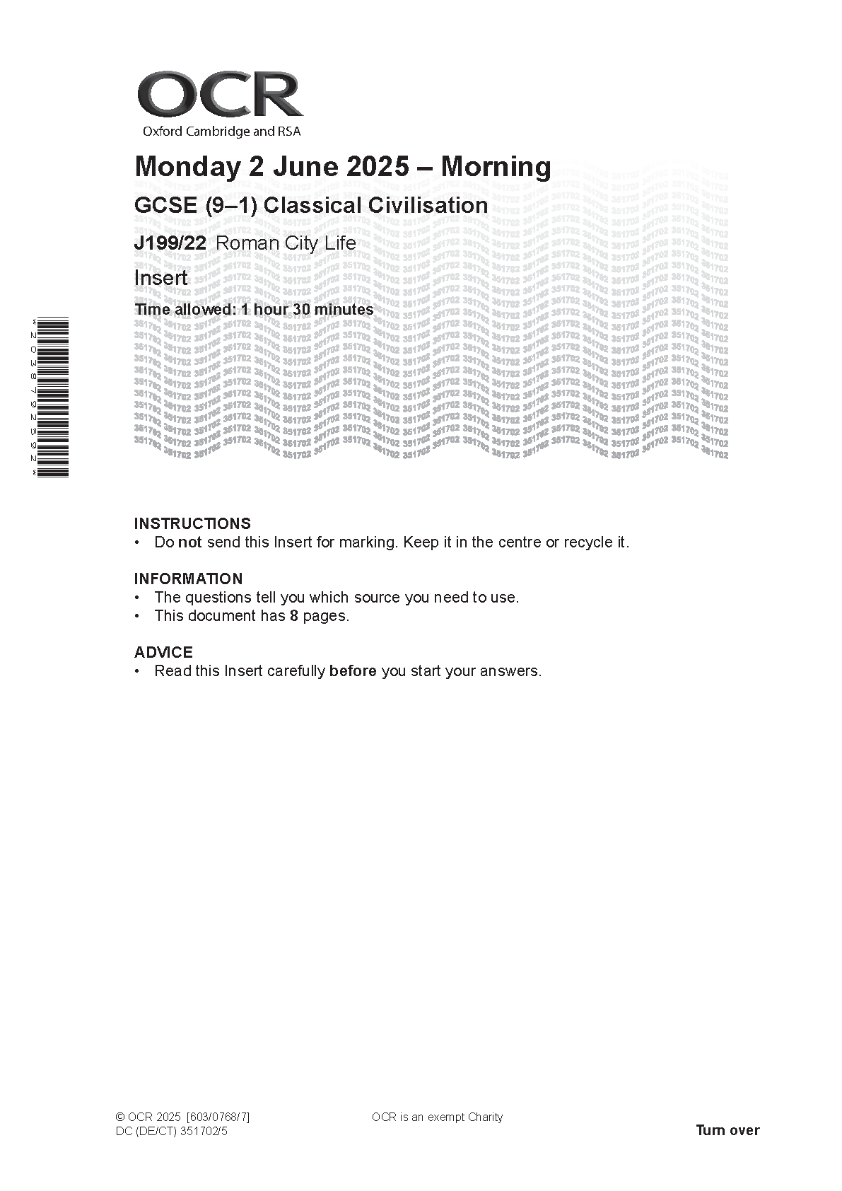 2025 OCR GCSE Classical Civilisation Insert (J199/22 Roman City Life)