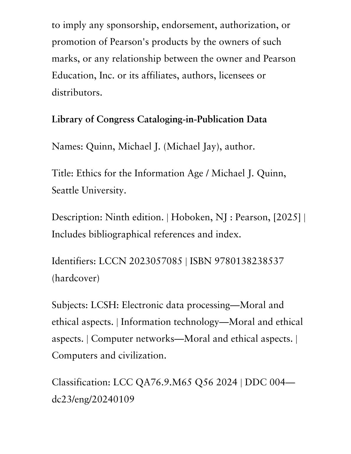 Test Bank for Ethics for the Information Age, Ninth Edition by Michael J. Quinn