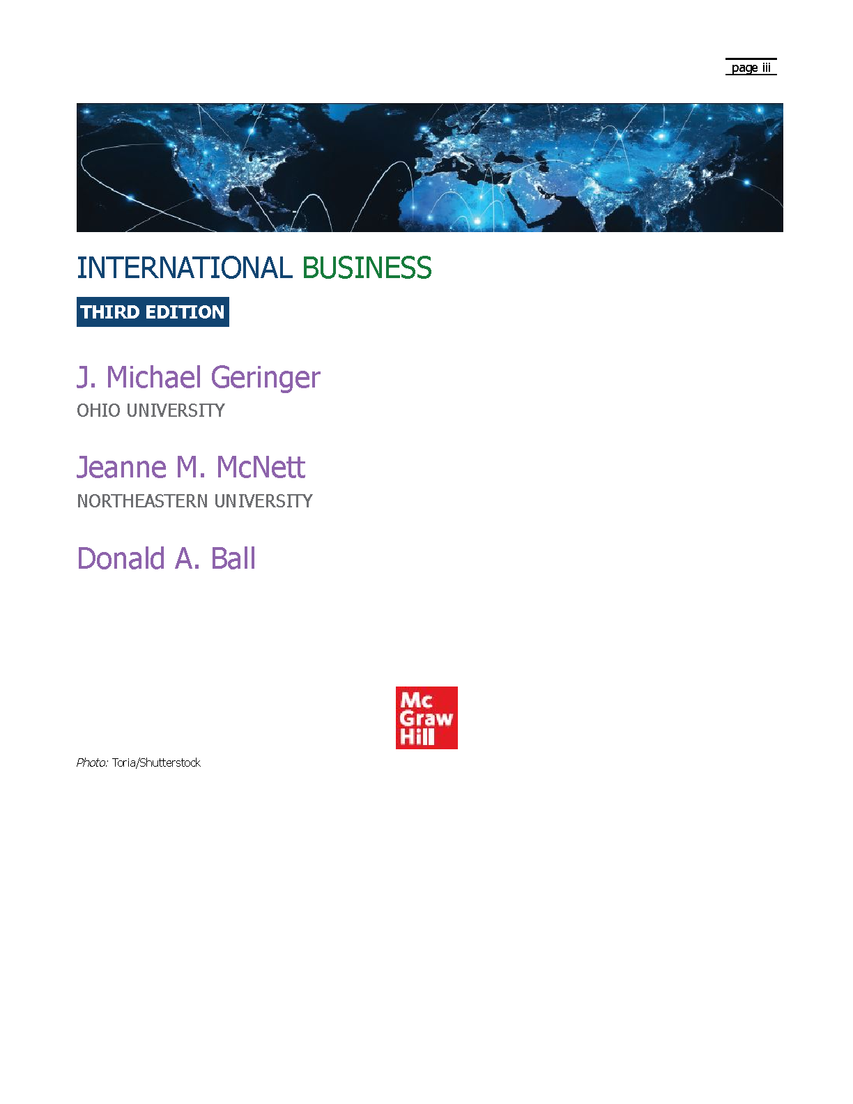 Test Bank for International Business, 3rd Edition by J. Michael Geringer, Jeanne M. McNett, Donald A. Ball