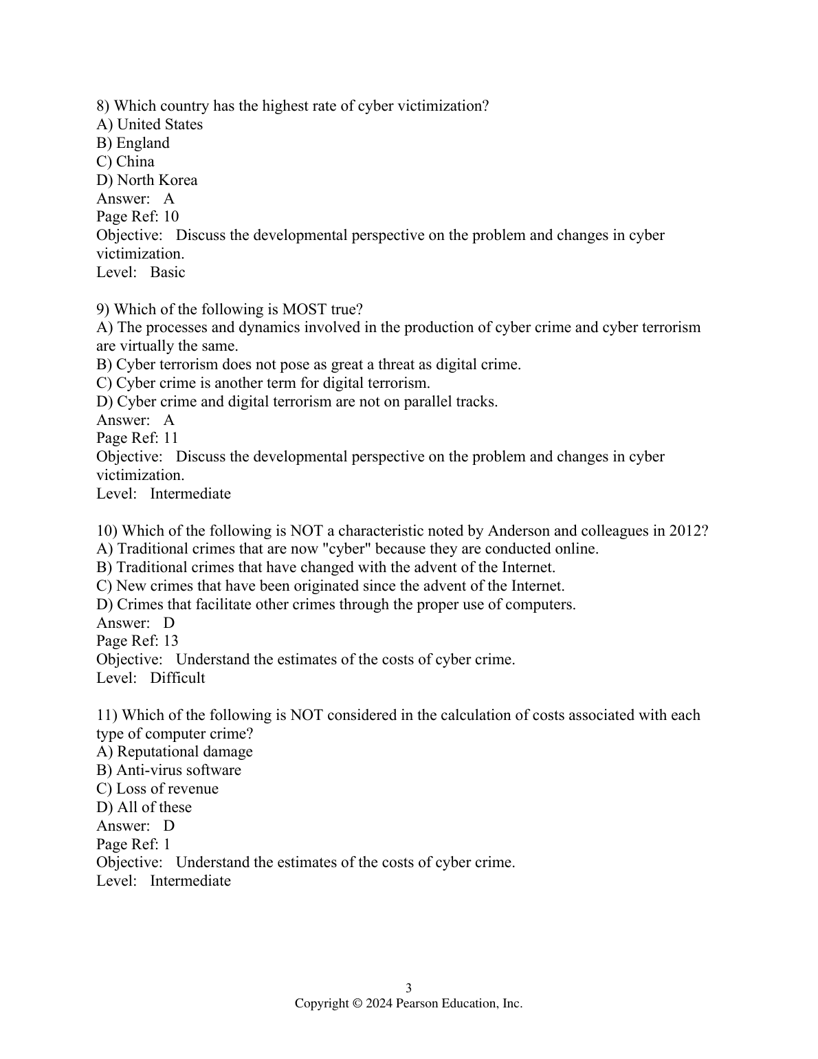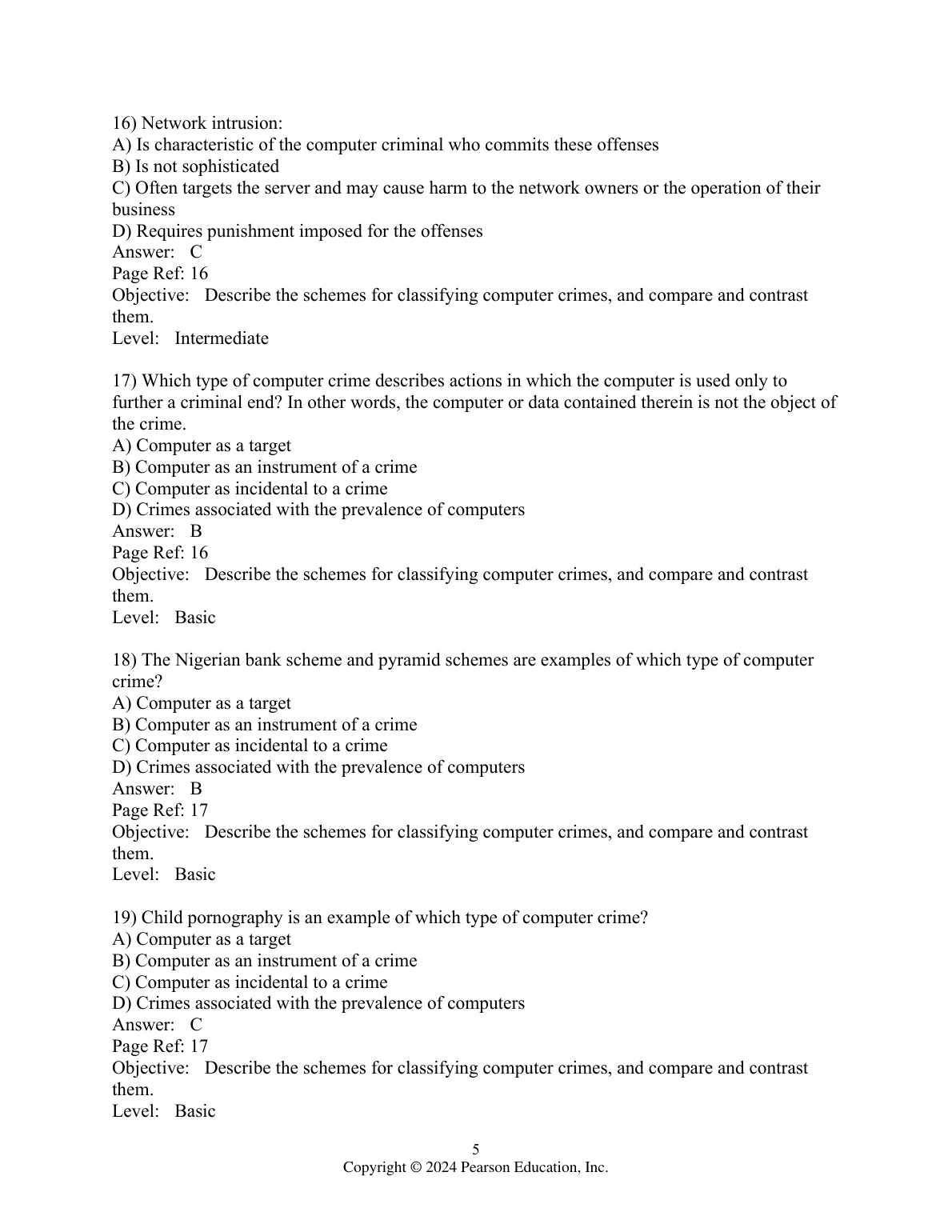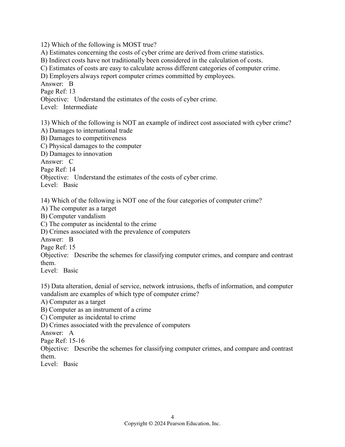 Master your course with the official Test Bank for 'Cyber Crime and Cyber Terrorism,' 5th Edition, authored by Taylor, Fritsch, Liederbach, Saylor, and Tafoya. This invaluable study aid provides a comprehensive collection of exam-style questions, including multiple-choice, true/false, and fill-in-the-blanks, directly corresponding to the textbook chapters. It is the ultimate tool to test your understanding, identify areas for improvement, and prepare effectively for your exams to achieve outstanding results. Instant download available after purchase.