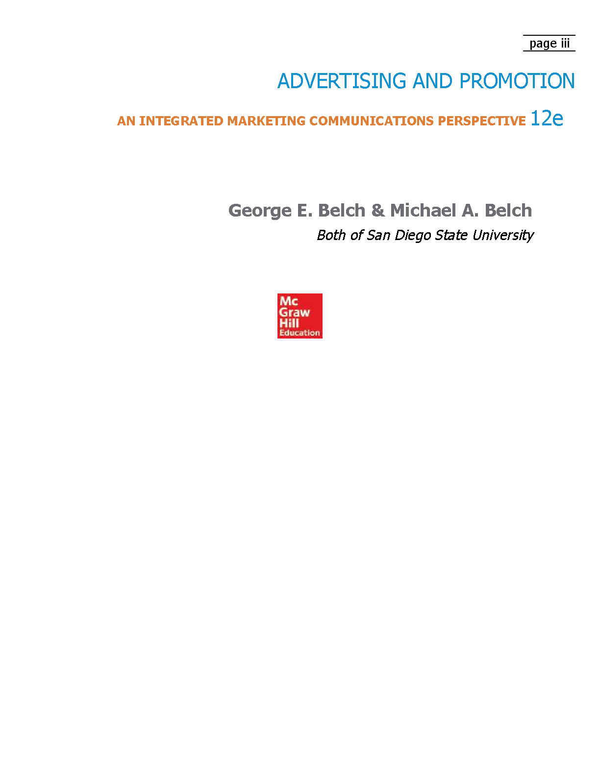 Test Bank for Advertising and Promotion: An Integrated Marketing Communications Perspective, 12th Edition by George E. Belch & Michael A. Belch
