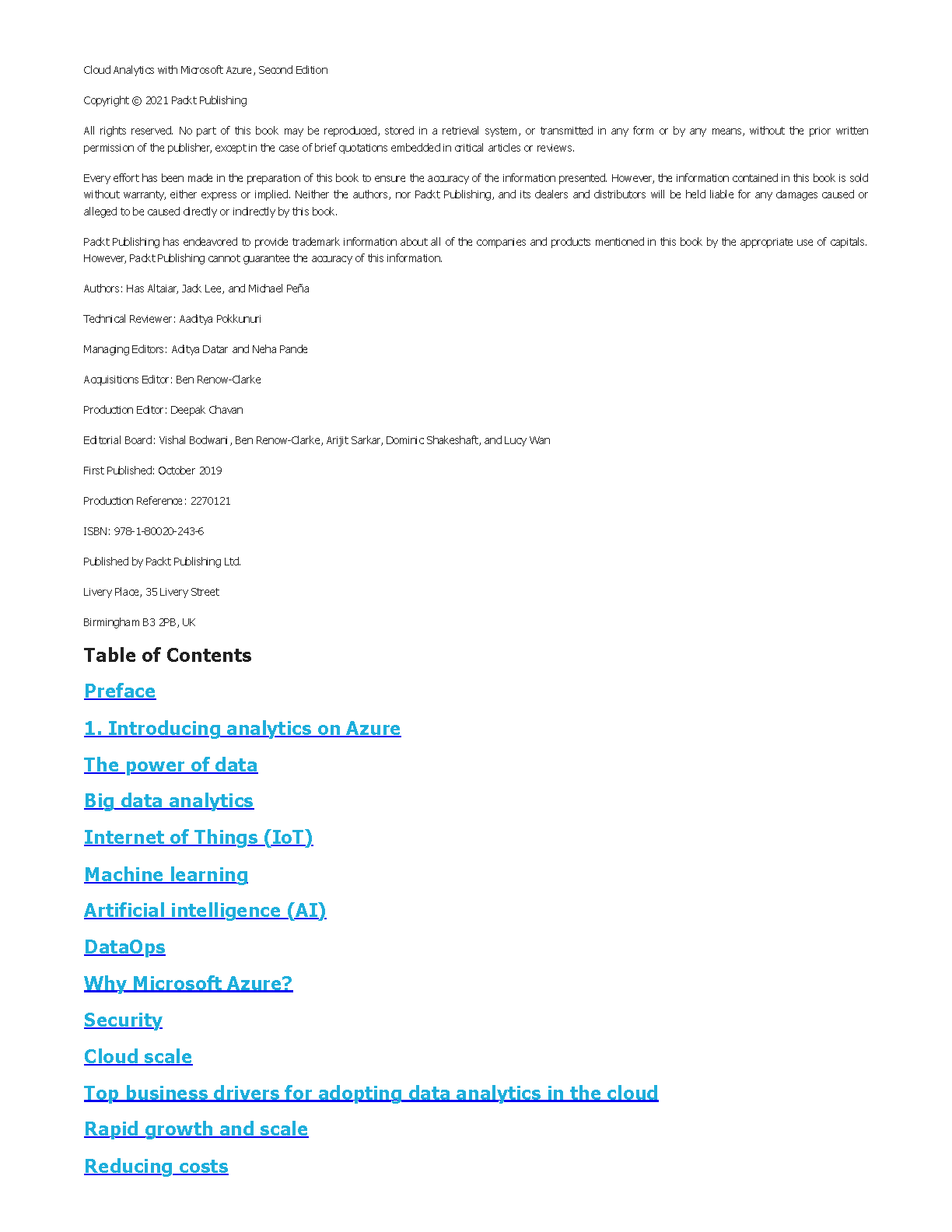 Master cloud analytics and ace your 2025/2026 exams with this comprehensive guide to 'Cloud Analytics with Microsoft Azure, 2nd Edition'. This resource is expertly designed to help you avoid resits by providing in-depth knowledge on transforming business operations using Azure's powerful analytics services. Learn to build scalable data analytics solutions, master data warehousing with Azure Synapse, and visualize insights with Power BI. Get the ultimate study companion to pass your exams on the first try.