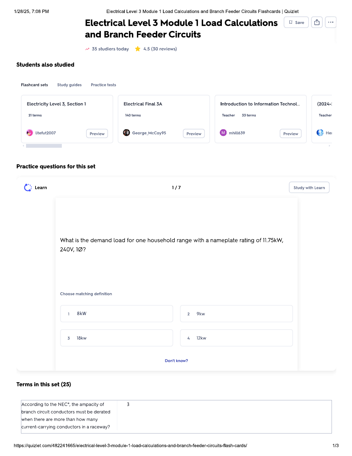 Ace your Electrical Level 3 exam on the first attempt! This comprehensive study guide for 2025/2026 covers Module 1: Load Calculations and Branch Feeder Circuits from the NCCER Electrical curriculum, 11th Edition. Dive deep into essential topics, including demand load calculations, understanding NEC® requirements for ampacity, and mastering branch feeder circuit design. Our expertly crafted practice questions and flashcards are designed to give you the confidence and knowledge needed to excel. Avoid costly resits and fast-track your electrician career with this essential study resource.