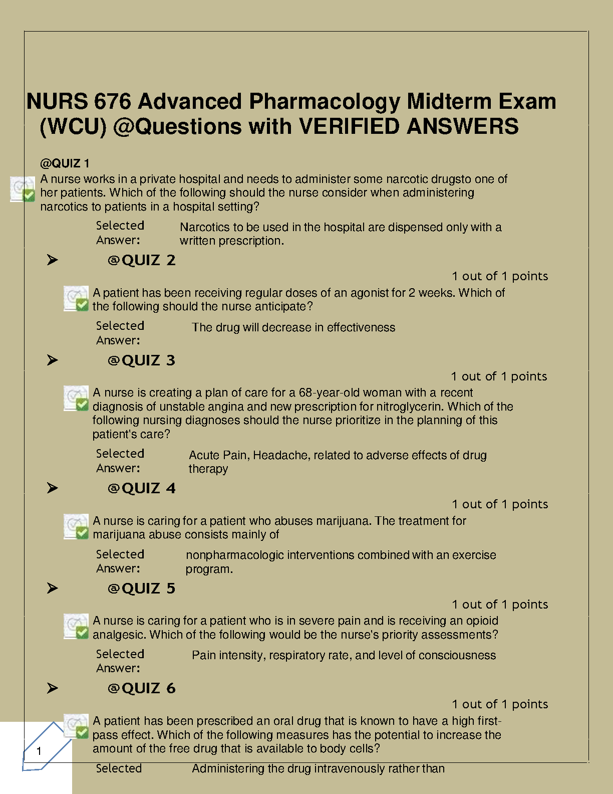 NURS 676 Advanced Pharmacology Midterm Exam Test Bank (WCU) - Complete Questions with Verified Answers