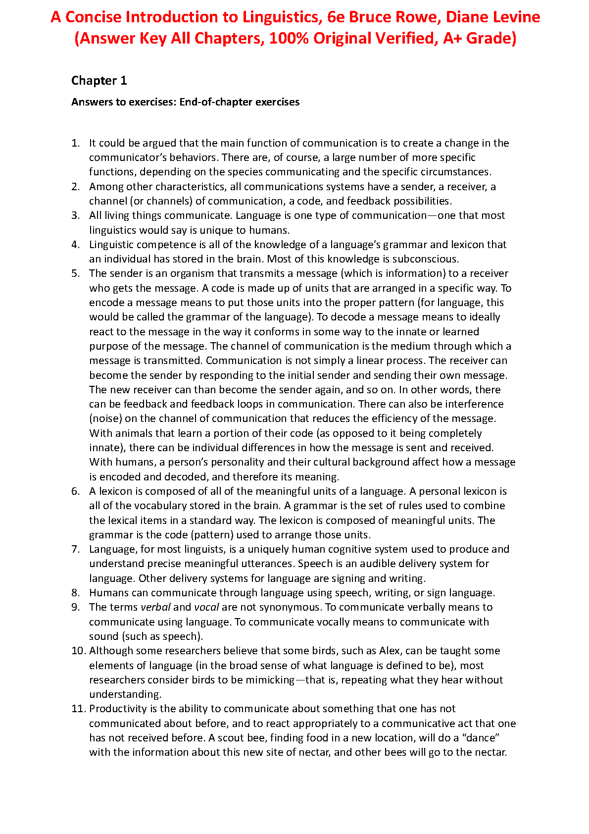 Solution Manual for A Concise Introduction to Linguistics, 6th Edition by Bruce M. Rowe & Diane P. Levine