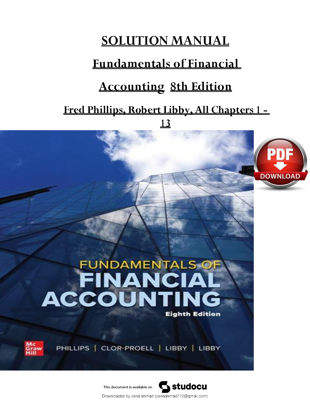 Master your accounting course with the complete Solution Manual for Fundamentals of Financial Accounting, 8th Edition. Authored by Fred Phillips, Shana Clor-Proell, Robert Libby, and Patricia Libby, this guide provides detailed, step-by-step answers for all chapters (1-13). It is the perfect tool for students to verify their work, understand complex concepts, and effectively prepare for exams to achieve academic success.