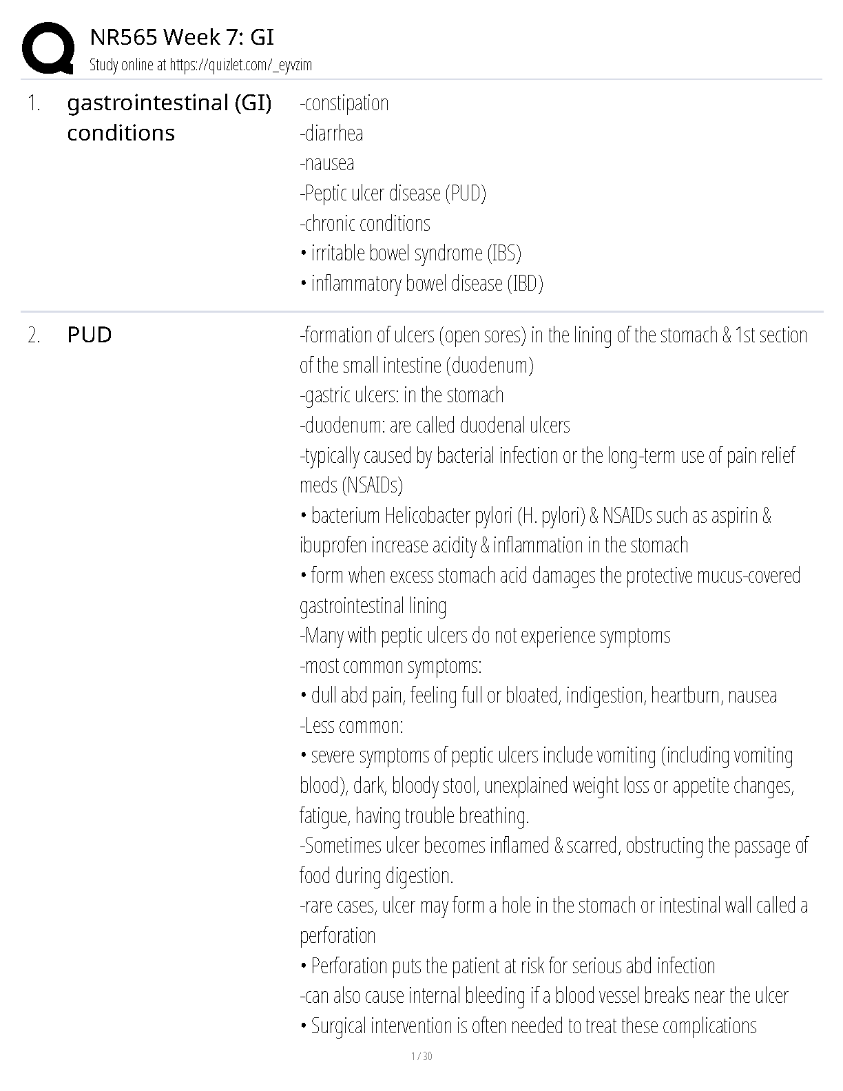 NR565 Week 7 GI Exam Study Guide 2025/2026 | Comprehensive Notes on Gastrointestinal Conditions & Pharmacology to Help You Pass on Your First Attempt
