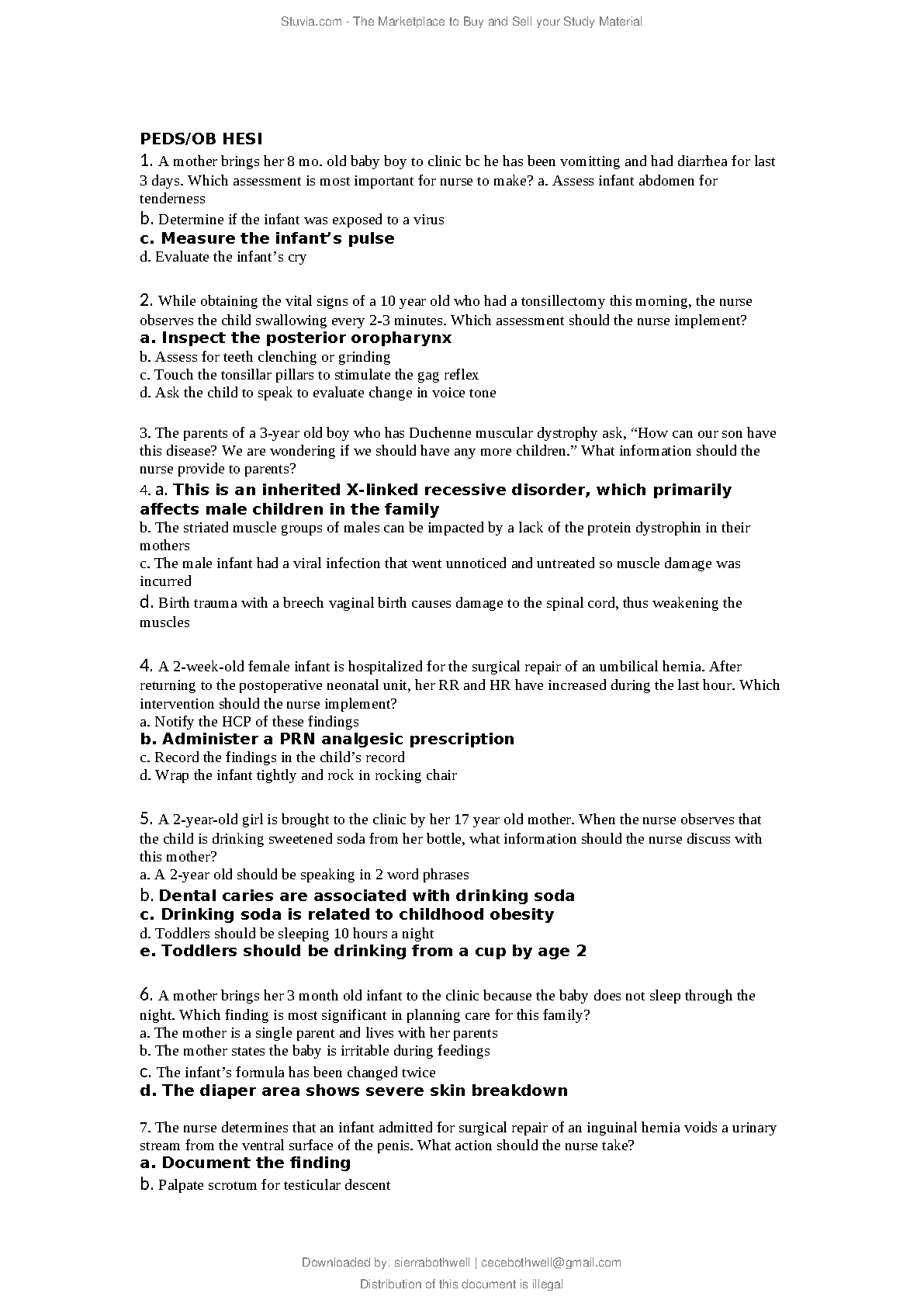 HESI Peds/OB Exit Exam Test Bank: A Comprehensive Q&A Guide to Ace Your Pediatrics & Obstetrics Nursing Exam