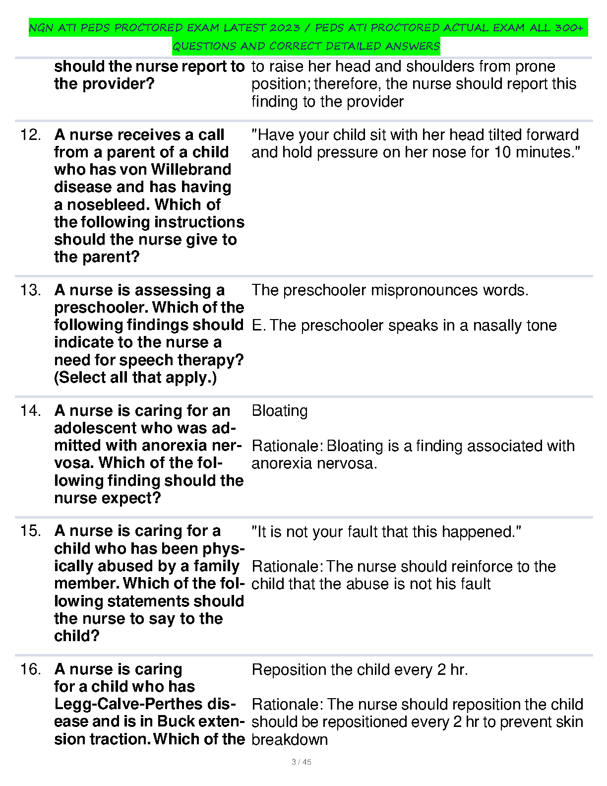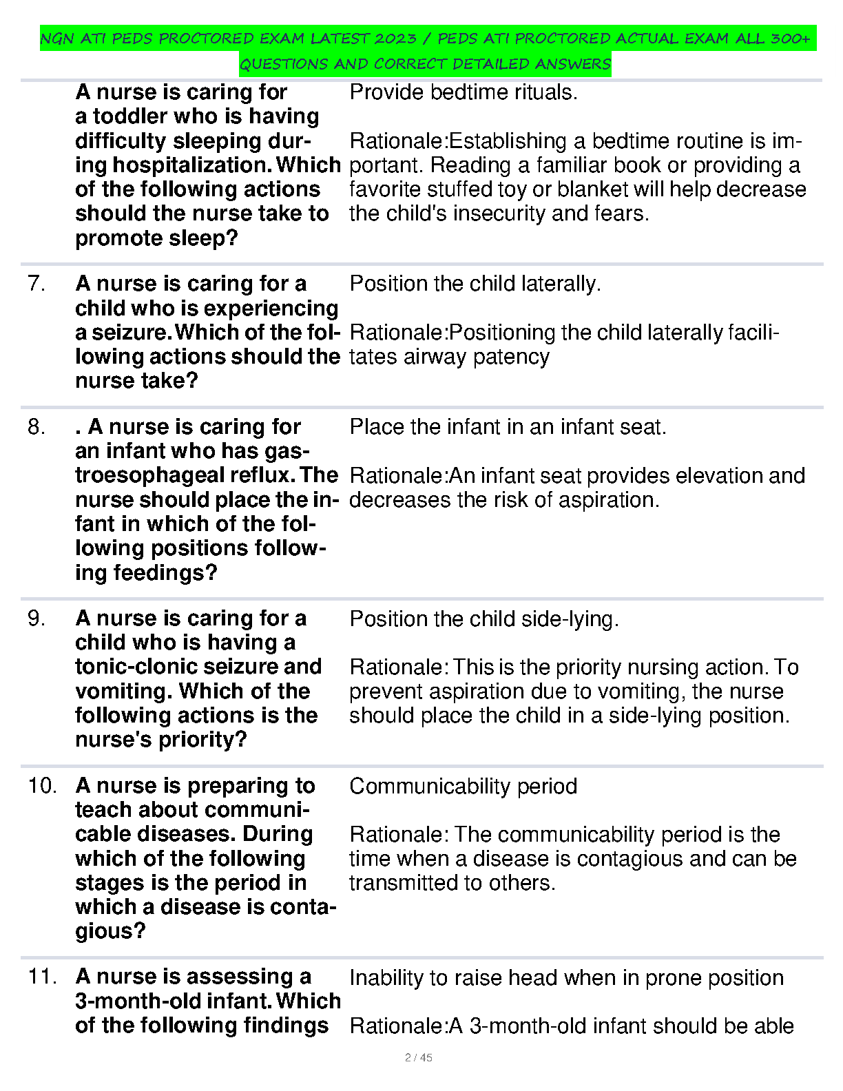 Master the NGN ATI Peds Proctored Exam with our comprehensive 2024 test bank! This extensive resource features over 300 meticulously crafted practice questions, each paired with a correct answer and a detailed, easy-to-understand rationale. Designed to mirror the actual exam, this guide covers all critical pediatric nursing topics. The in-depth rationales will solidify your knowledge, boost your confidence, and provide you with the essential tools to pass your ATI Peds exam on the very first try, helping you avoid costly resits and advance in your nursing career.