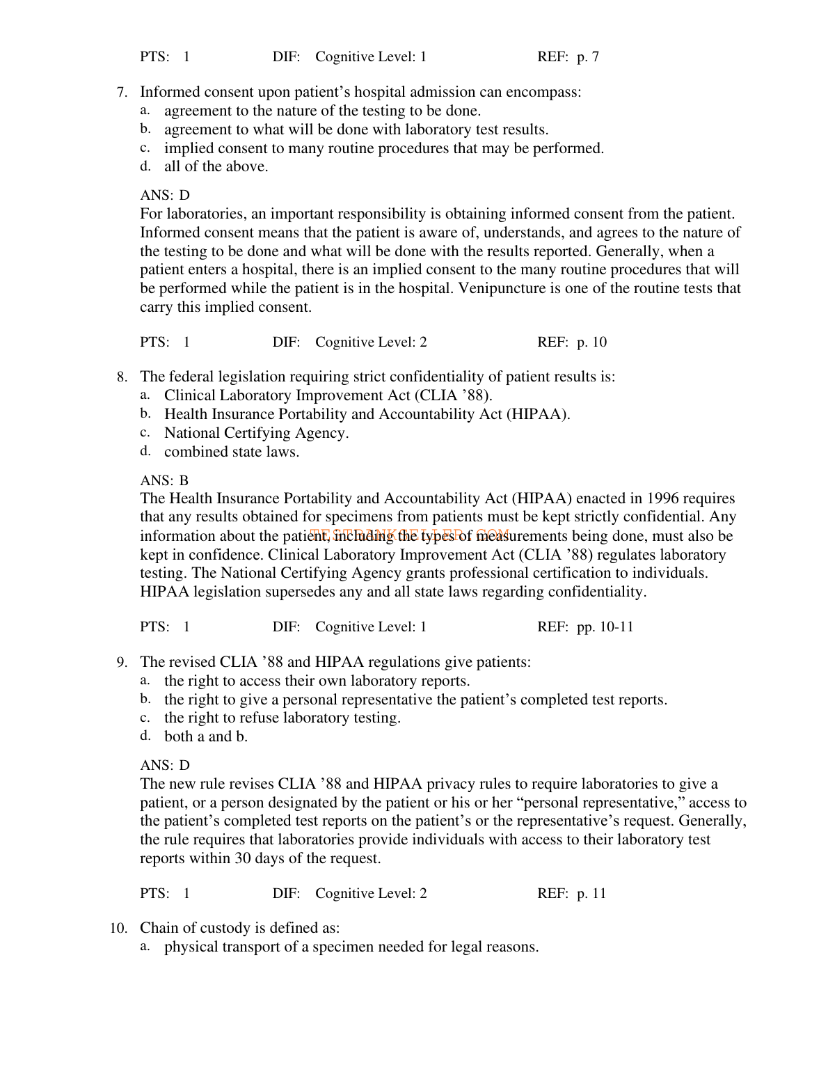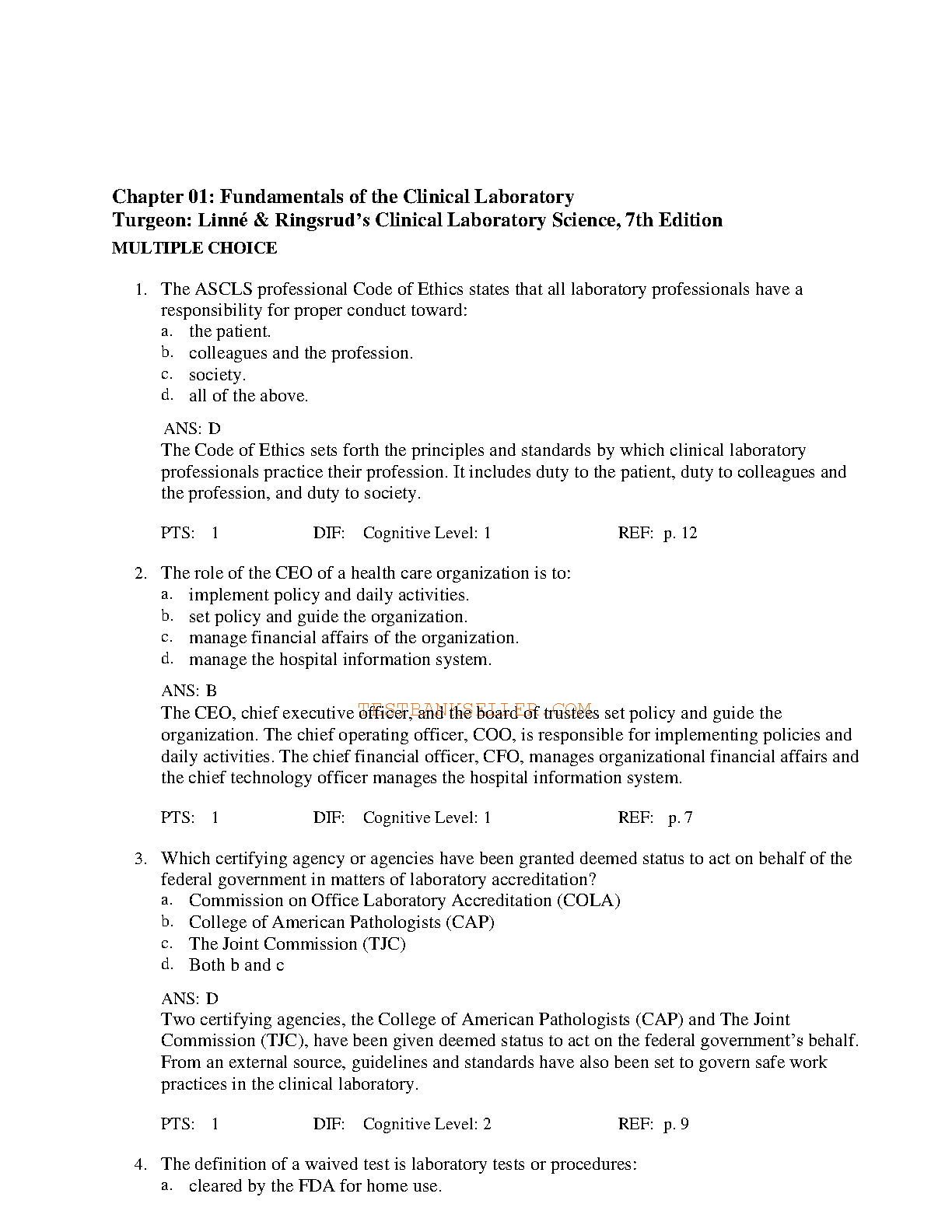 Test Bank for Linne & Ringsrud's Clinical Laboratory Science, 7th Edition by Mary Louise Turgeon