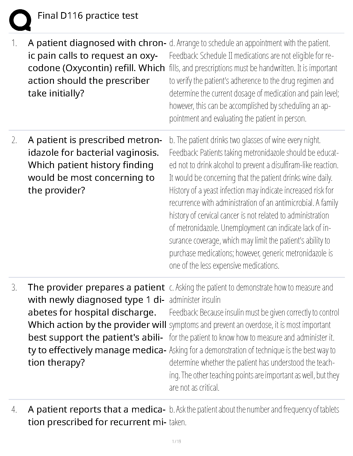Ace your WGU D116 Advanced Pharmacology final exam with our ultimate practice test bank for the 2025/2026 academic year. This essential study resource features a complete collection of final exam questions, each paired with a detailed answer and in-depth rationale. By working through these clinical scenarios, you'll master crucial concepts in medication management, patient safety, and provider responsibilities. Our test bank is specifically designed to mirror the actual exam, helping you study smarter, not harder. Boost your confidence and ensure you pass on your first try with these verified and expertly explained questions.