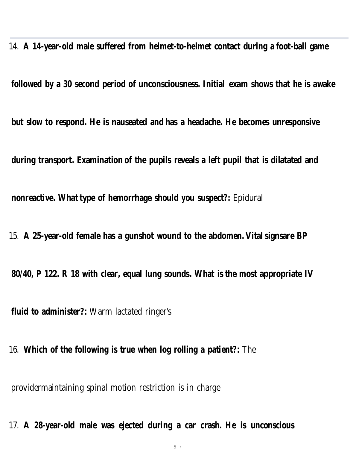 Excel in your prehospital care studies with the complete Test Bank for the 10th Edition of PHTLS: Prehospital Trauma Life Support by the National Association of Emergency Medical Technicians (NAEMT). This essential resource is filled with practice questions and detailed rationales that cover all key concepts from the textbook. It's the ultimate study guide designed to help you master the material, build confidence, and pass your certification exams on the first attempt, avoiding costly resits.