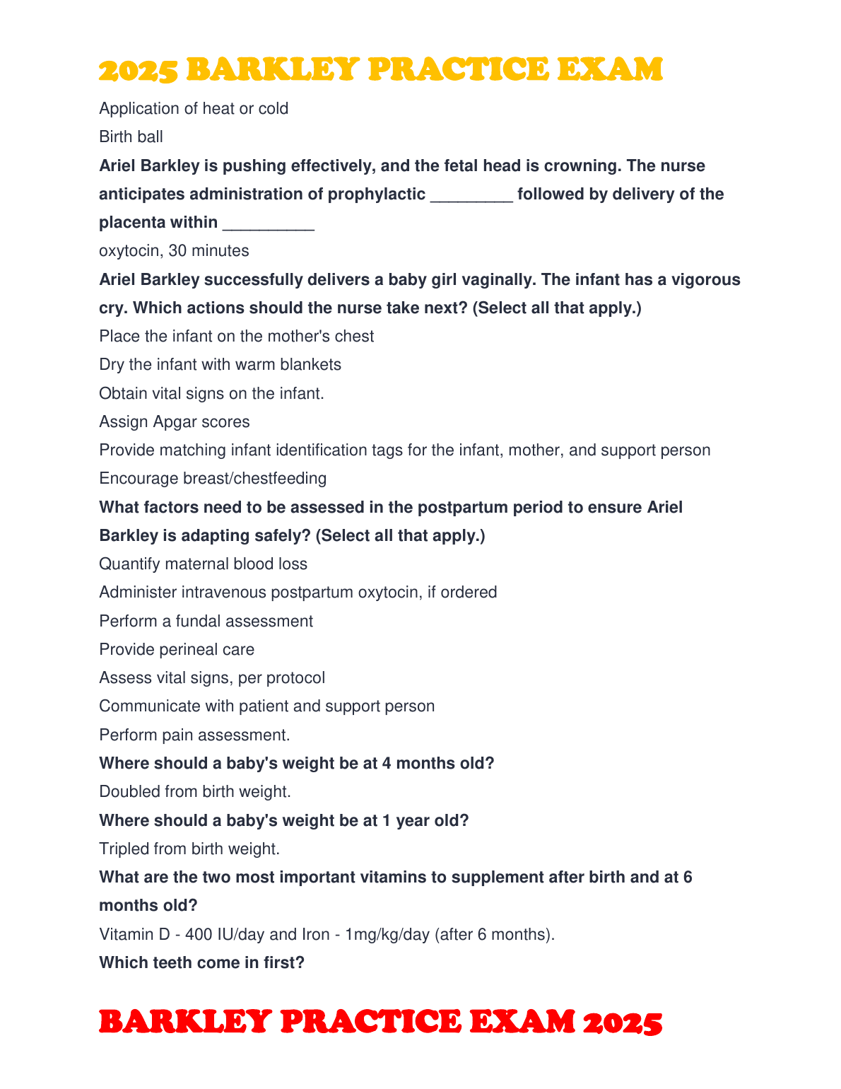 Unlock your potential and secure a first-time pass on your Nurse Practitioner certification exam with the latest 2025-2026 Barkley Practice Exam Test Bank. This comprehensive resource from Barkley & Associates is meticulously designed to mirror the actual exam format and difficulty. Inside, you'll find an extensive collection of practice questions with detailed, verified answers covering critical domains like obstetrics, labor and delivery, and fetal assessment. Stop worrying about resits! Our 2025/2026 edition is the ultimate tool to build confidence and master the concepts needed to ace your exam. Download now and take the most crucial step toward your FNP certification!