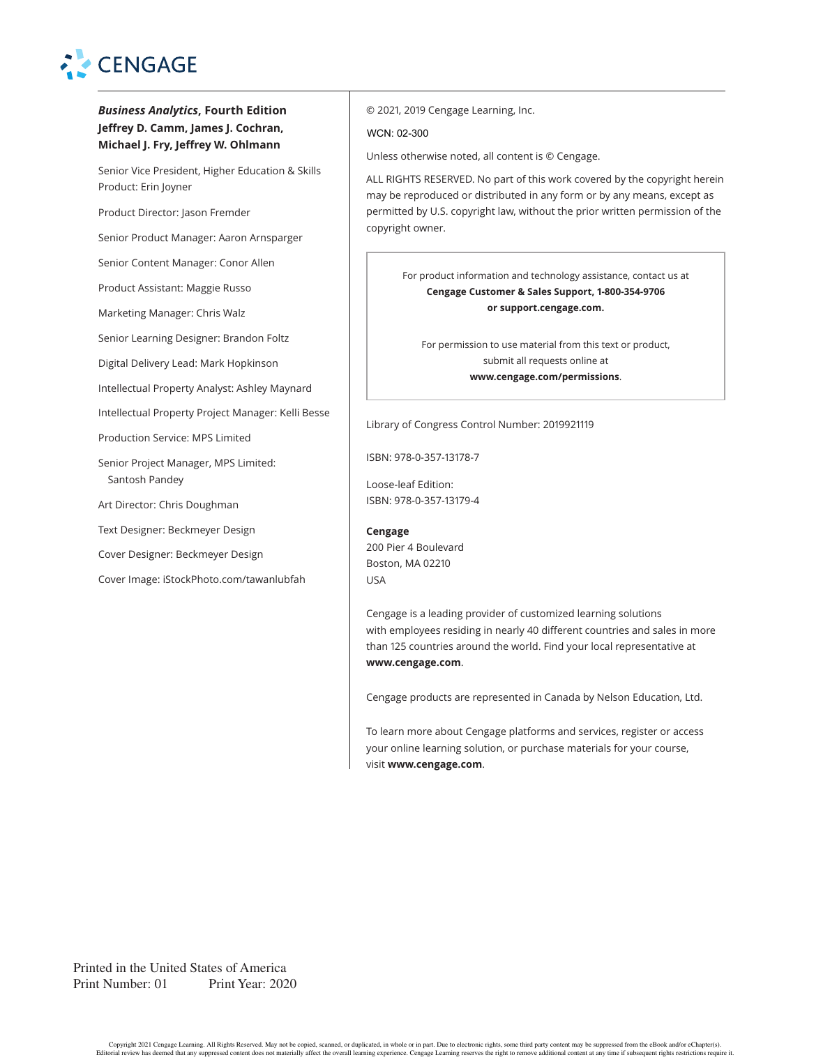 Test Bank for Business Analytics, 4th Edition by Jeffrey D. Camm, James J. Cochran, Michael J. Fry, Jeffrey W. Ohlmann