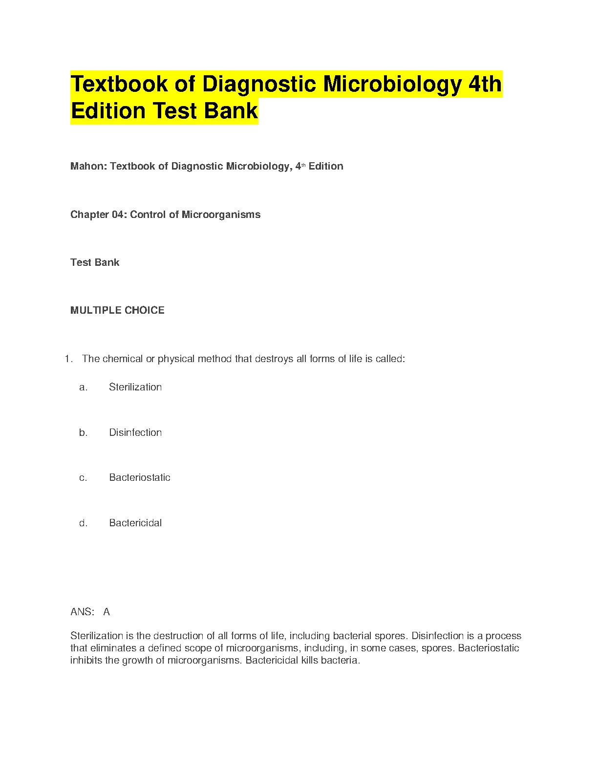 Textbook of Diagnostic Microbiology 4th Edition BY Mahon