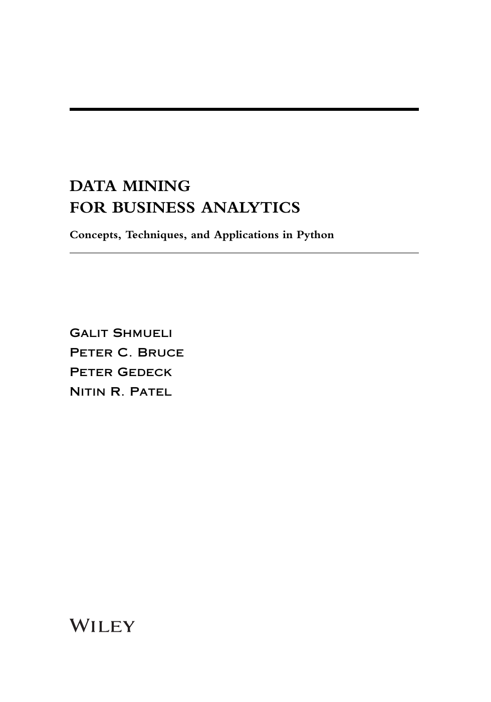 Master Data Mining for Business Analytics with Python: 1st Edition by Galit Shmueli, Peter C. Bruce, Peter Gedeck, and Nitin R. Patel | 2025/2026 First Attempt Exam Success Guide