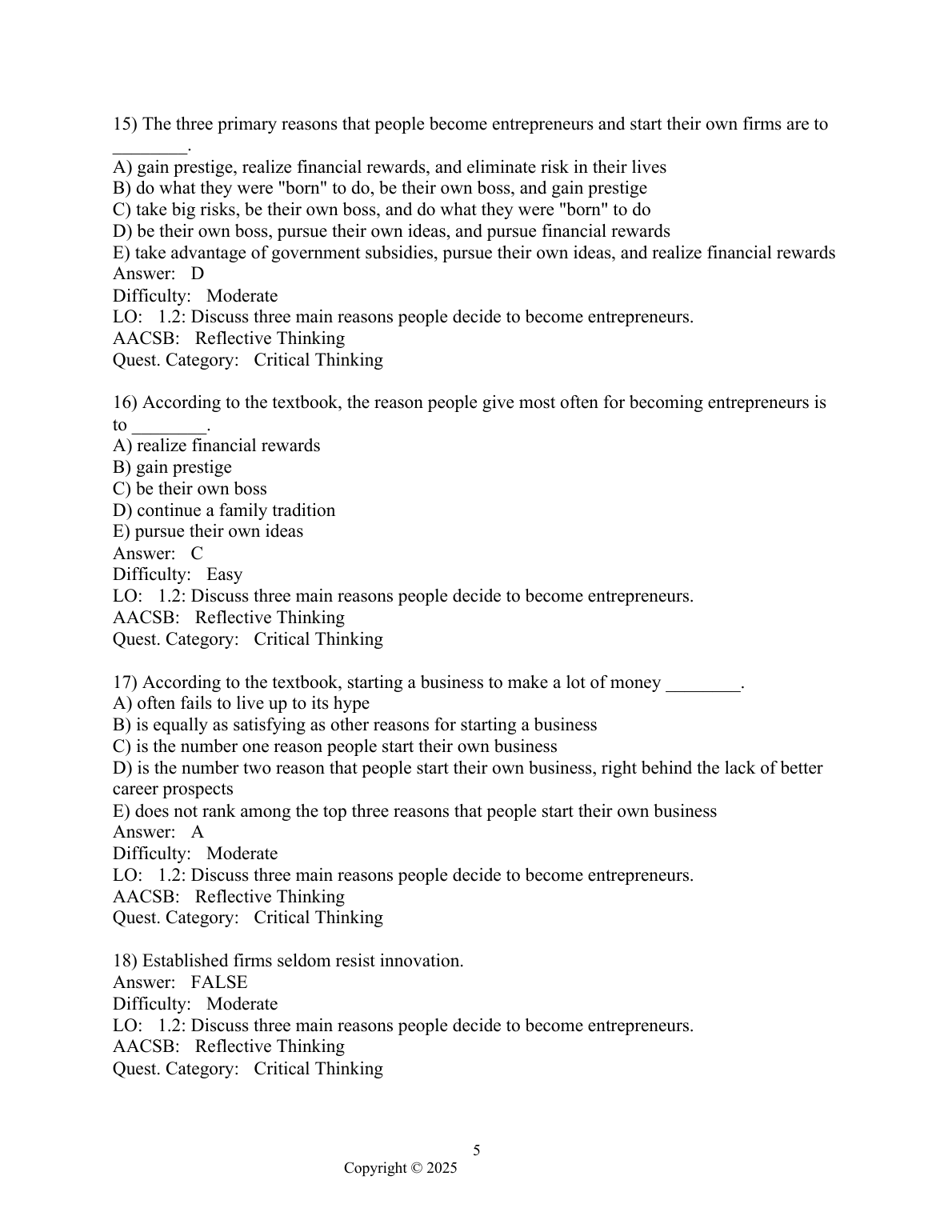 Master your entrepreneurship course with the complete, official Test Bank for Entrepreneurship, 7th Edition by Bruce R. Barringer and R. Duane Ireland. This invaluable study guide provides hundreds of practice questions with detailed answers, mirroring the format and difficulty of your actual exams. Spanning all chapters from 'Introduction to Entrepreneurship' to advanced topics, this resource is your key to understanding complex concepts, preparing effectively for tests, and achieving top grades. Download now and start studying smarter, not harder.