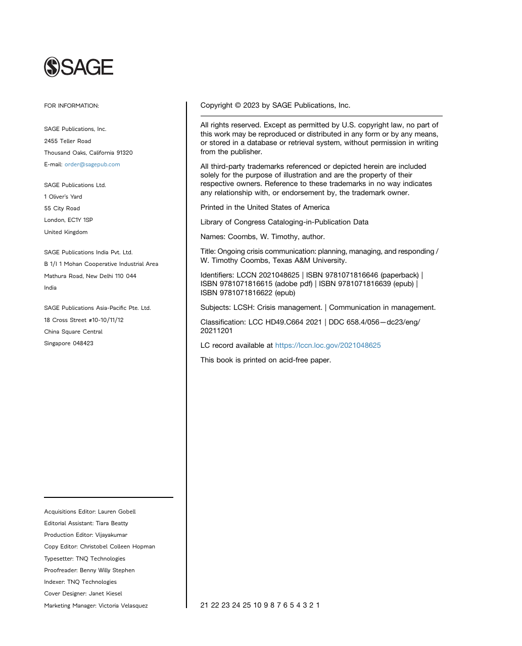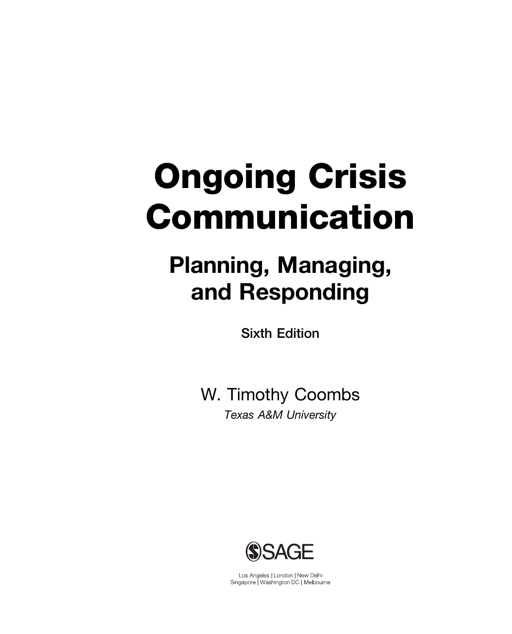 Test Bank for Ongoing Crisis Communication: Planning, Managing, and Responding, 6th Edition by W. Timothy Coombs