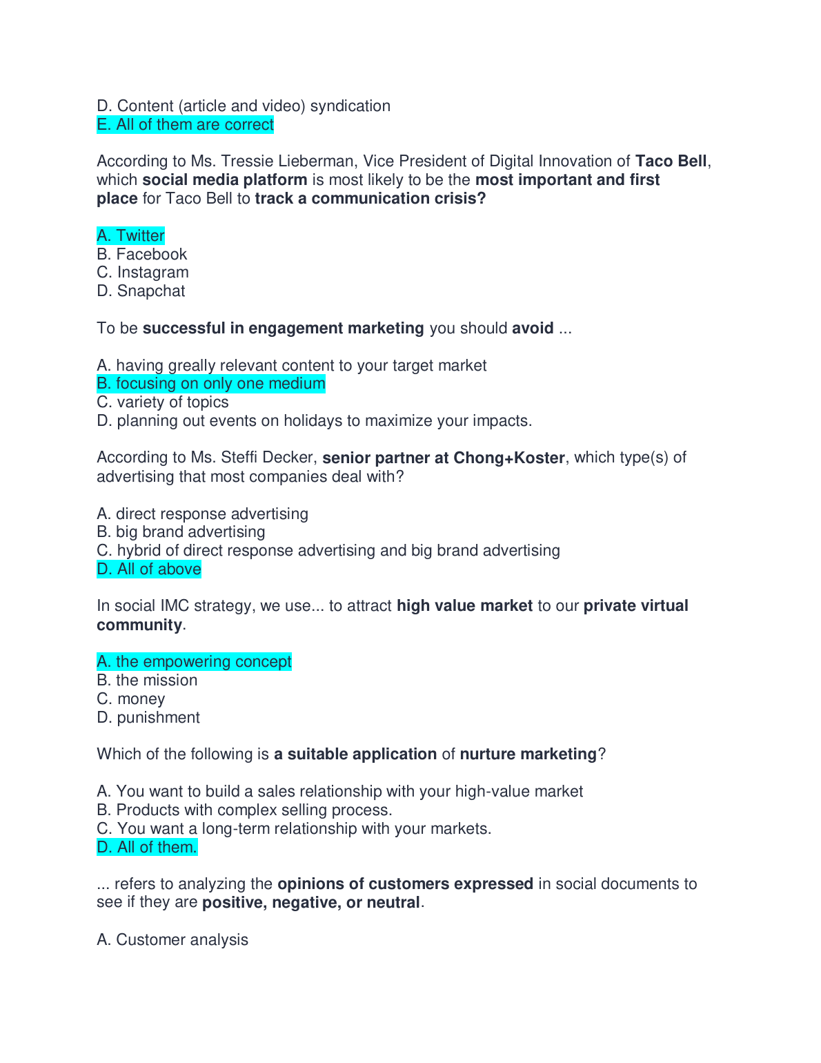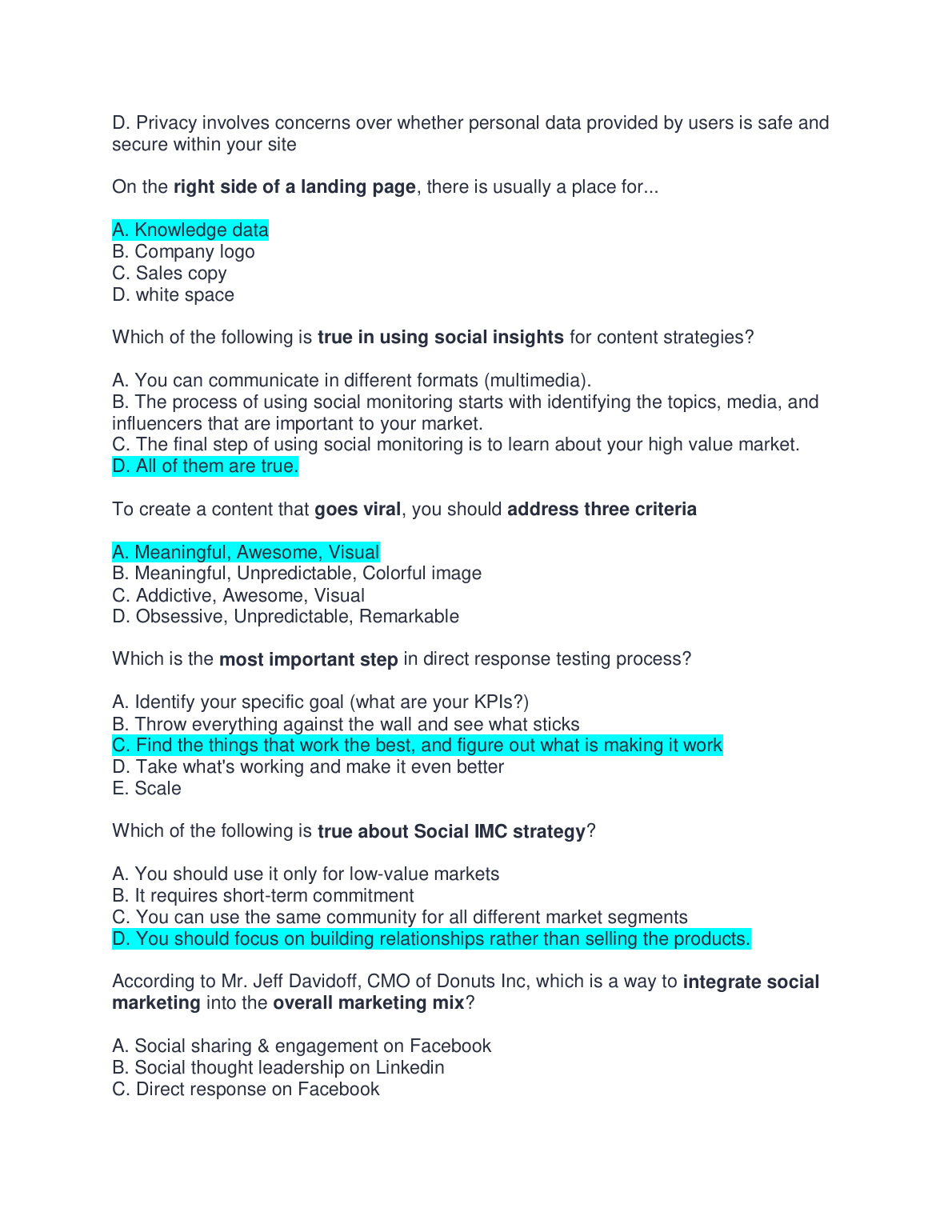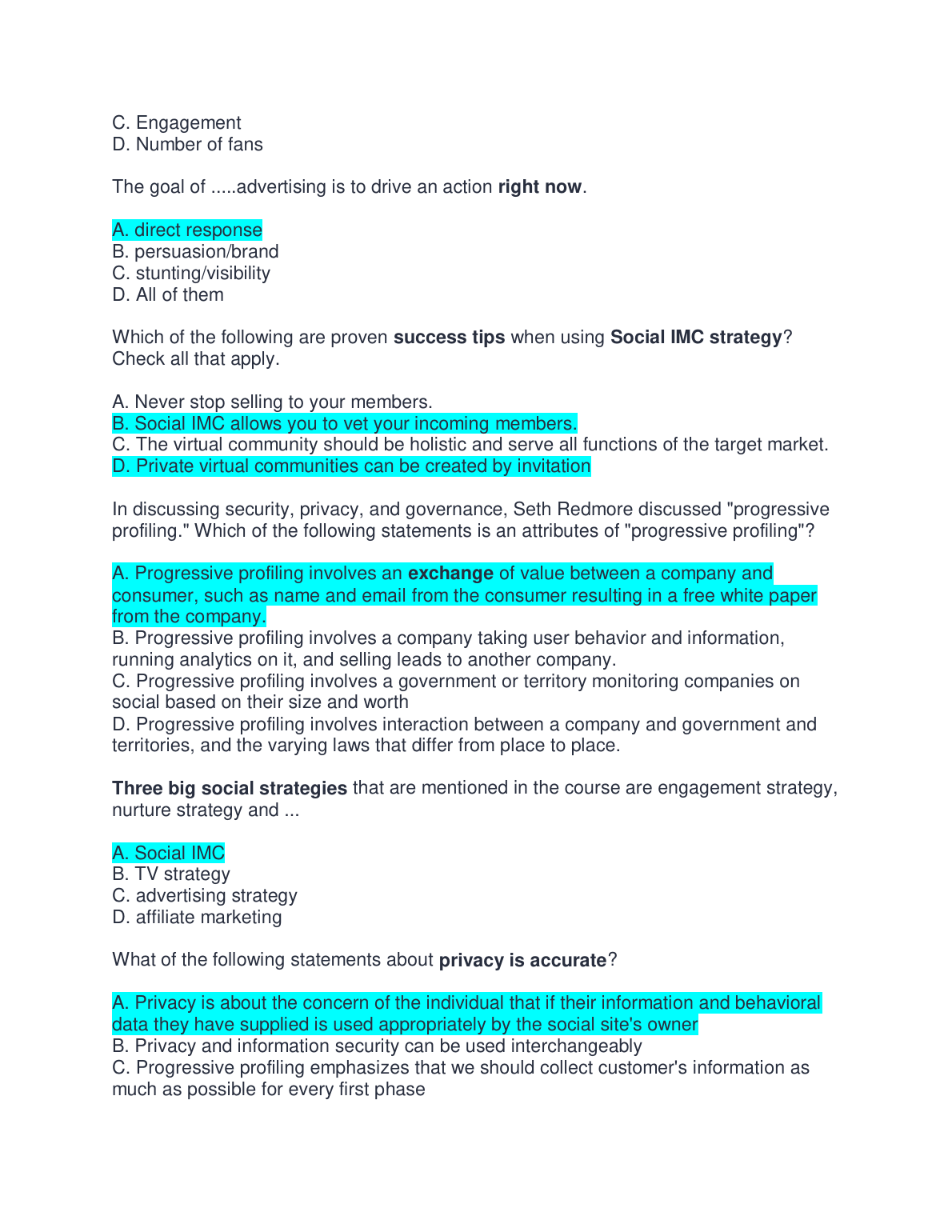 Master MKT 208c: Final Exam Test Bank for Social Media Marketing: A Strategic Approach, 3rd Edition by Melissa Barker, Donald Barker, Nicholas Bormann, & Krista Neher
