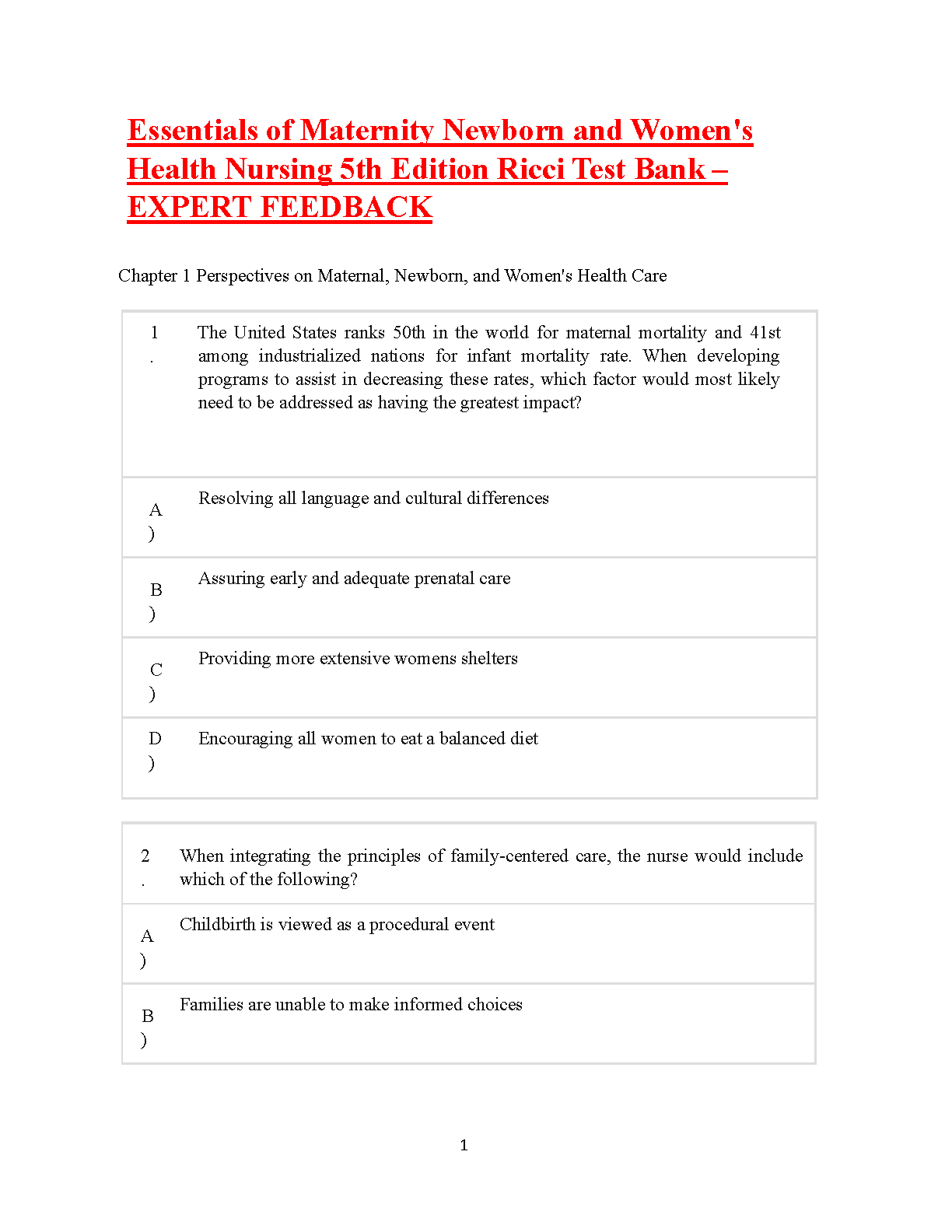 Test Bank for Essentials of Maternity Newborn and Women's Health Nursing, 5th Edition by Susan Scott Ricci, Theresa Kyle, and Susan Carman