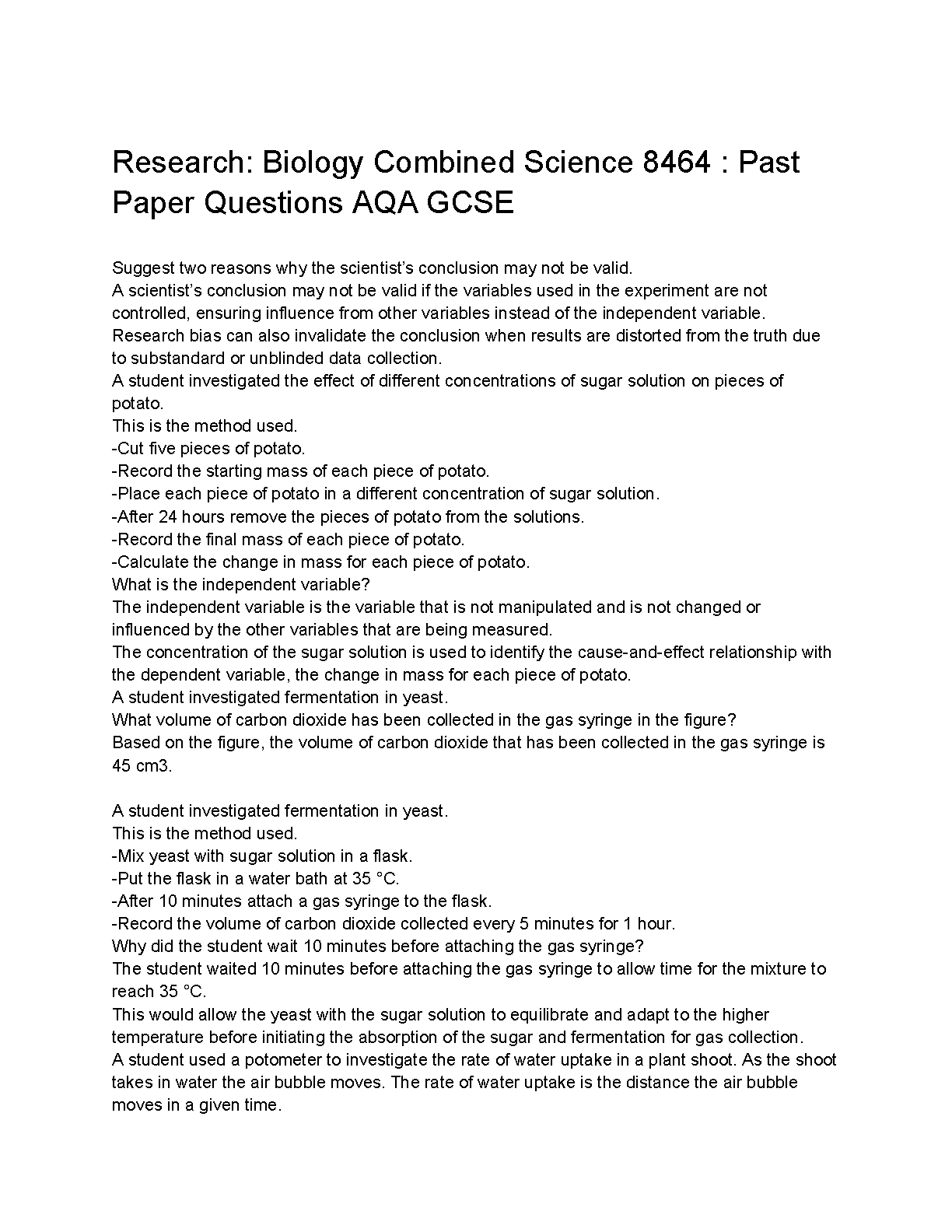 AQA GCSE COMBINED SCIENCE QUESTION PAPERS AND MARK SCHEMES