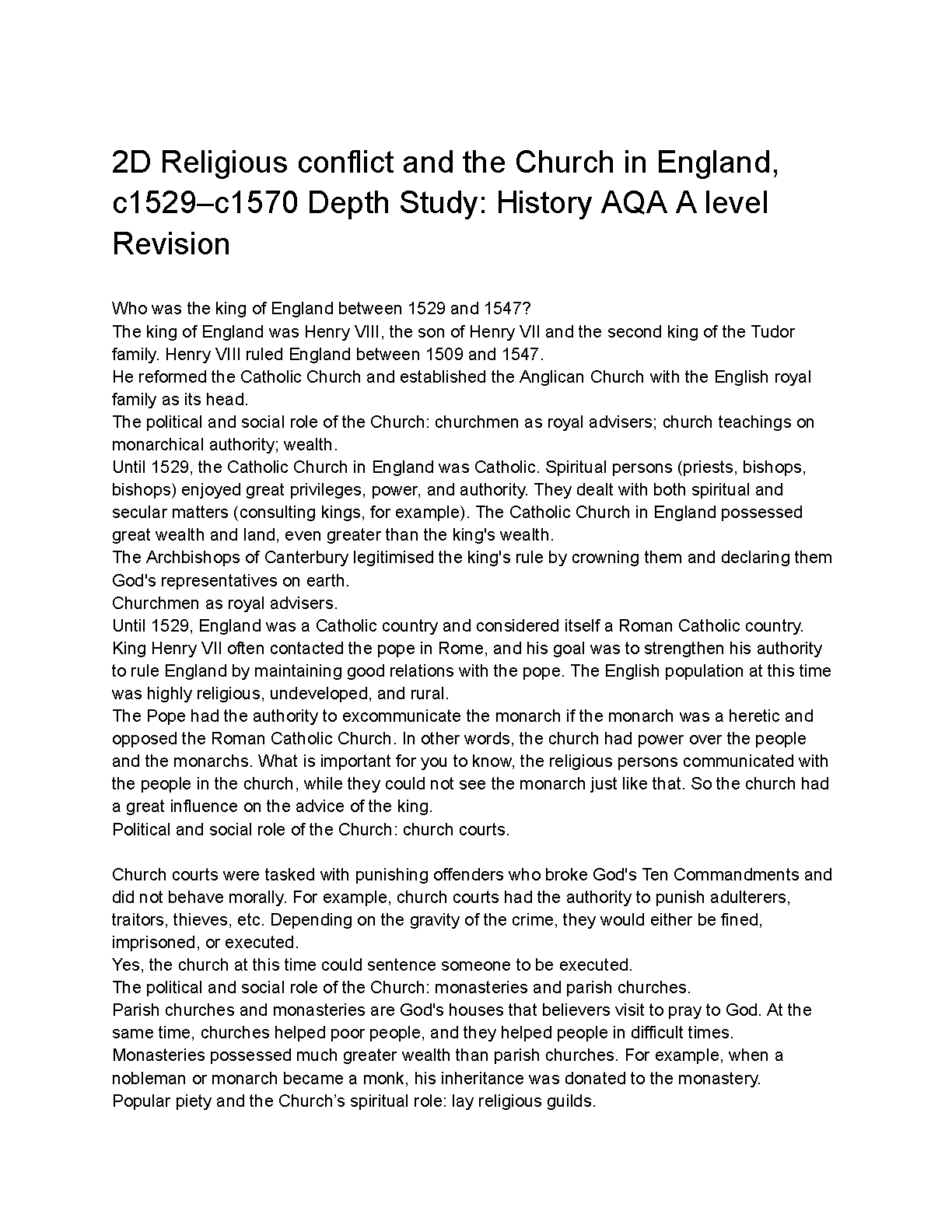 Unlock top grades in your AQA A-Level History exams with our ultimate revision guide for the '2D Religious Conflict and the Church in England, c1529-c1570' depth study. Fully updated for the 2025/2026 academic year, these comprehensive notes are your key to passing on the first attempt and avoiding resits. This guide delves into the crucial period of Henry VIII's reign, examining the immense power, wealth, and social influence of the pre-Reformation Church. Master key topics including the role of the Pope, the authority of church courts, and the function of monasteries to ensure you have the in-depth knowledge needed to excel.
