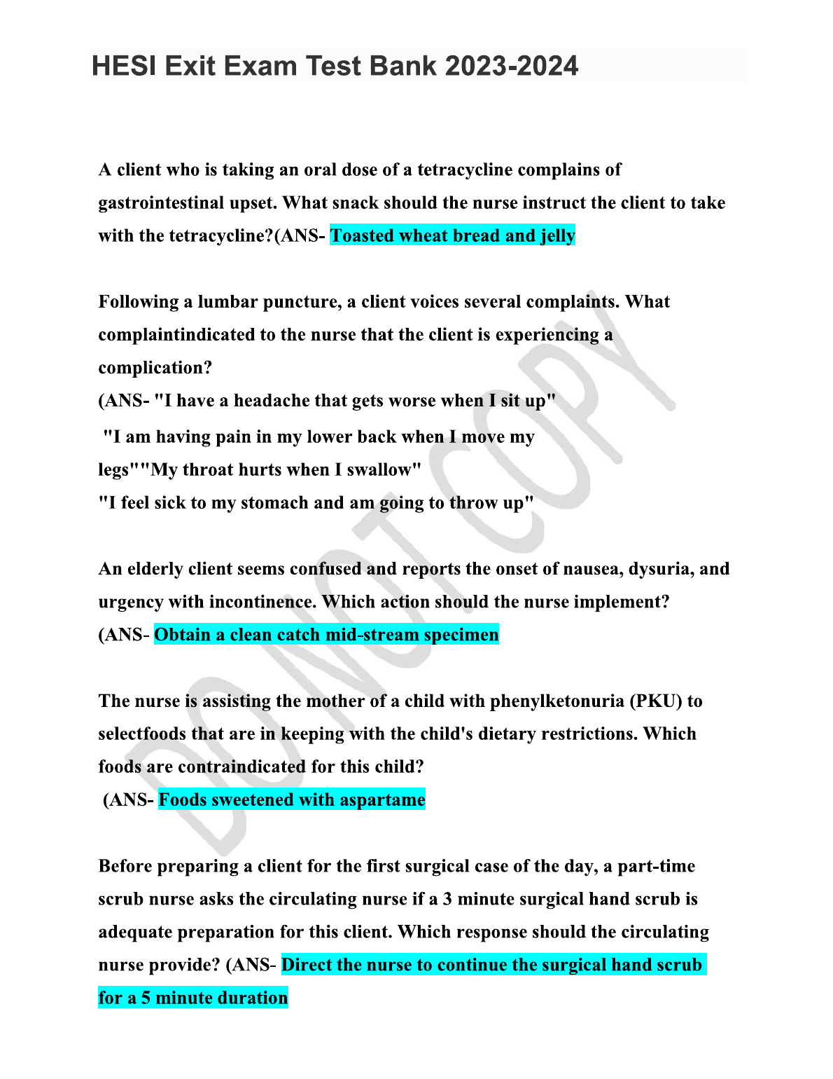 Unlock your potential and conquer the HESI Exit Exam with our latest 2025/2026 test bank. This comprehensive resource is packed with a wide range of practice questions and detailed, verified answers covering critical nursing concepts. Designed to mirror the actual exam format, this guide will help you identify your strengths and weaknesses, master complex clinical scenarios, and build the confidence you need to pass on your very first try. Stop worrying about resits and start your nursing career with a head start. Get your essential study companion today!