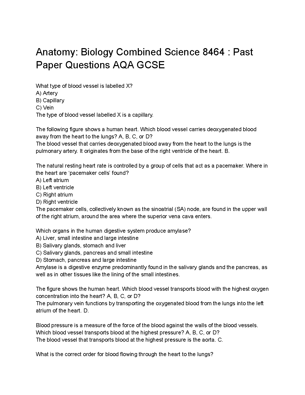 Ace your AQA GCSE Combined Science exams with our comprehensive resource focusing on the Biology Anatomy module (Paper 8464). Expertly updated for the 2025/2026 academic year, this guide is designed to help you pass on your first try. It features a curated collection of authentic past paper questions with detailed, easy-to-understand answers. Master crucial topics including the circulatory system—covering the heart, blood vessels, and blood flow—and key aspects of the digestive system. This essential study aid is perfect for targeted revision, building confidence, and securing top marks in your exams.