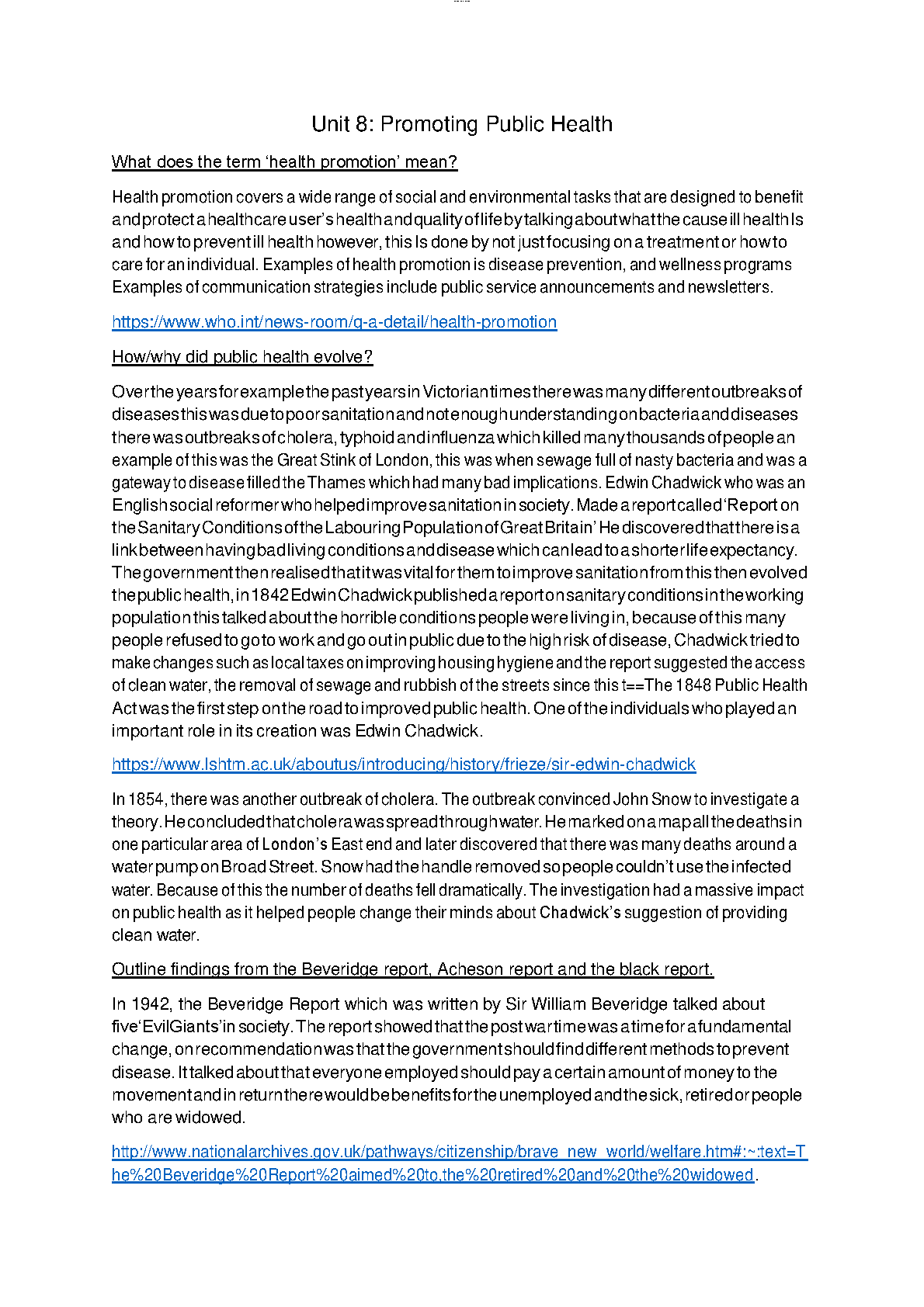 Promoting Public Health: Unit 8 A-Level Study Guide (2025/2026 Edition) | Master Key Concepts from Chadwick to the Beveridge Report & Pass First Time!