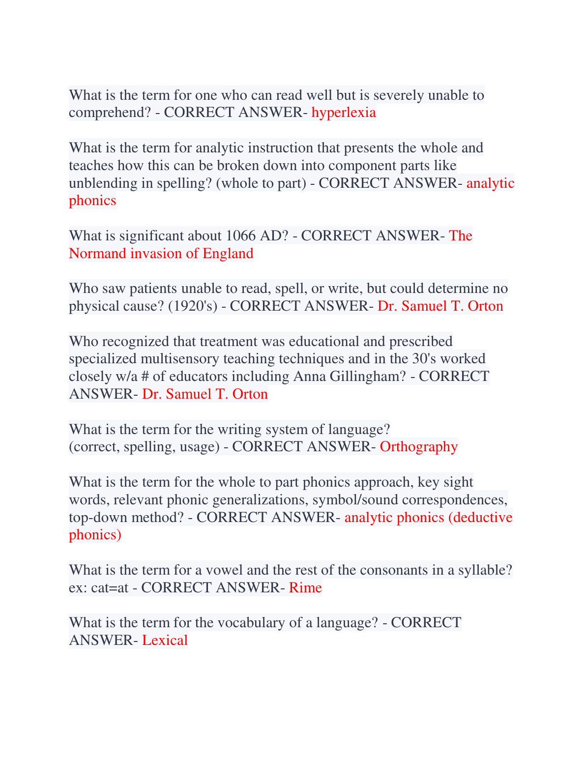 Master the Certified Academic Language Therapist (CALT) final exam with our comprehensive test bank for the 2023-2024 academic year. This A+ rated study guide features two distinct, verified versions of the exam, complete with all questions and correct answers. Dive deep into essential topics including morphology, word origins (Latin, Greek, Anglo-Saxon), prosody, and diagnostic tools. This resource is expertly crafted to help you understand the core concepts, boost your confidence, and pass your certification exam on the first try.