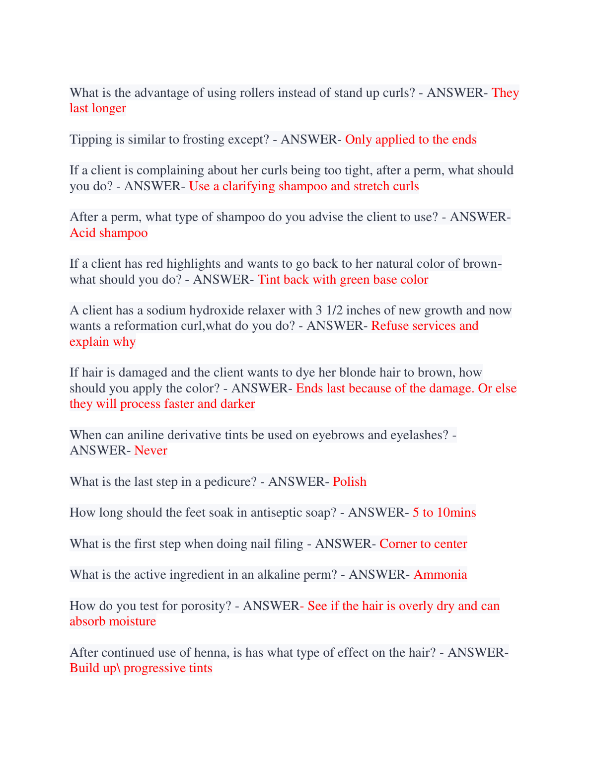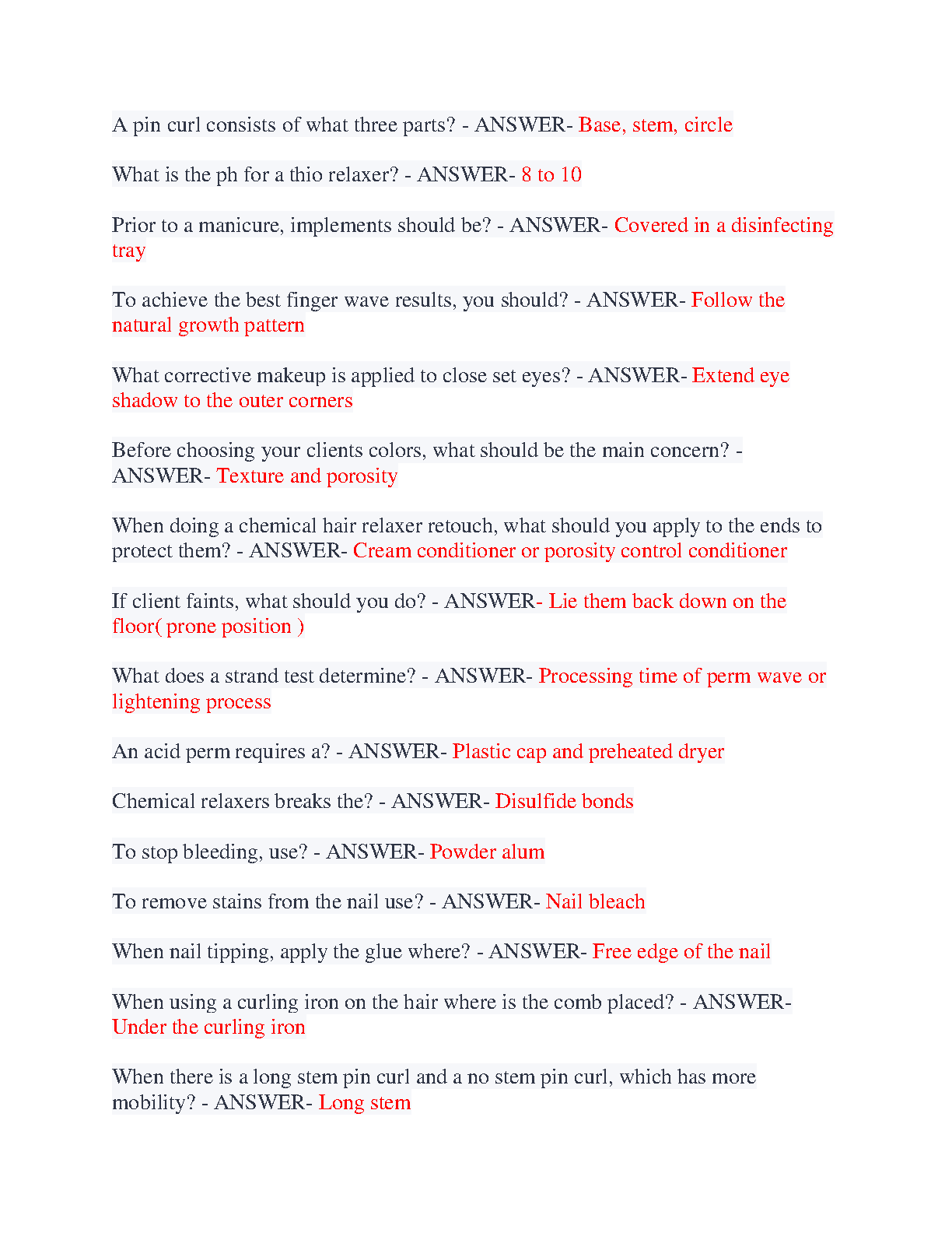 Ace your Cosmetology Clinical Final Exam on the first try with our 2025/2026 test bank. This comprehensive study guide features verified questions and detailed, accurate answers covering all essential topics, including chemical services, hair cutting techniques, and client safety. Designed to help you avoid resits and achieve an A+ grade, this resource is the key to passing your exam with confidence.