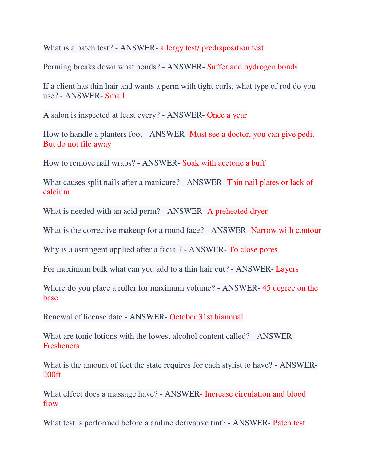 Cosmetology Clinical Final Exam Test Bank 2025/2026 | Verified Questions & Answers for A+ Success