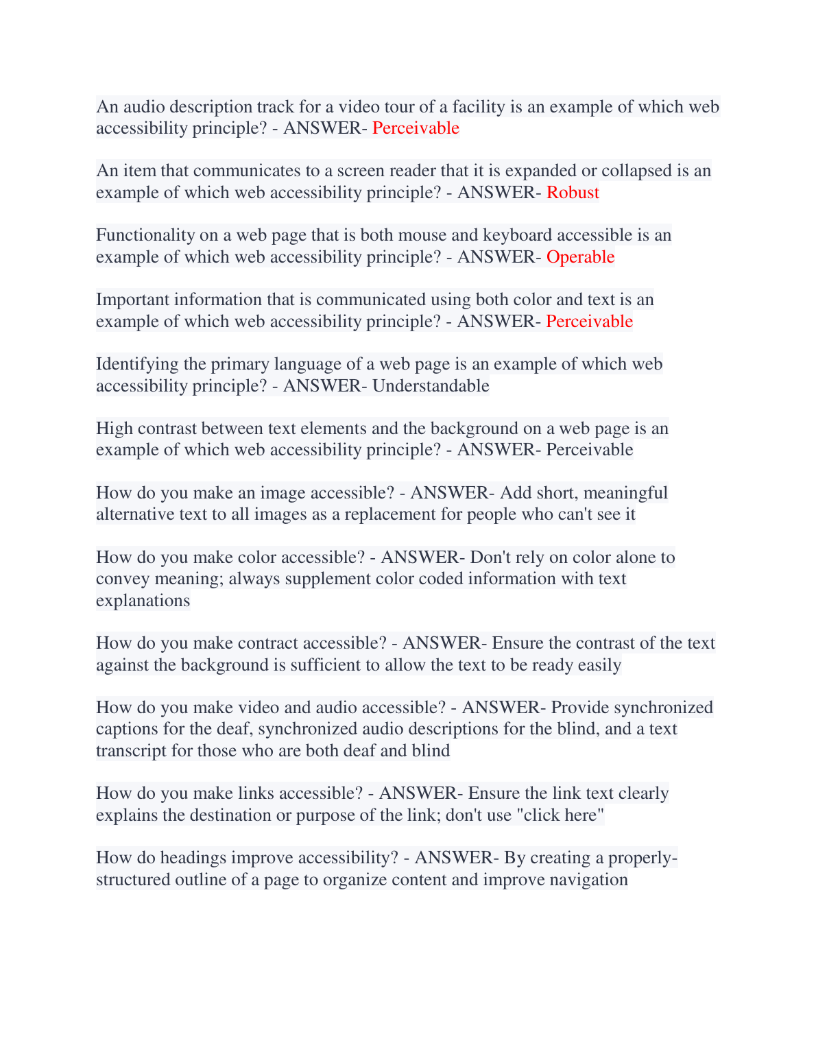 Master the IAAP CPACC Certification exam with our meticulously compiled 2023-2024 Test Bank. This A+ graded resource provides a comprehensive collection of the latest exam questions, complete with verified, in-depth answers. Deepen your understanding of core accessibility concepts, universal design, and the essential POUR principles (Perceivable, Operable, Understandable, and Robust). This study guide is expertly crafted to equip you with the knowledge and confidence to pass your certification on the very first try. Download now to access the ultimate preparation tool for your accessibility career.