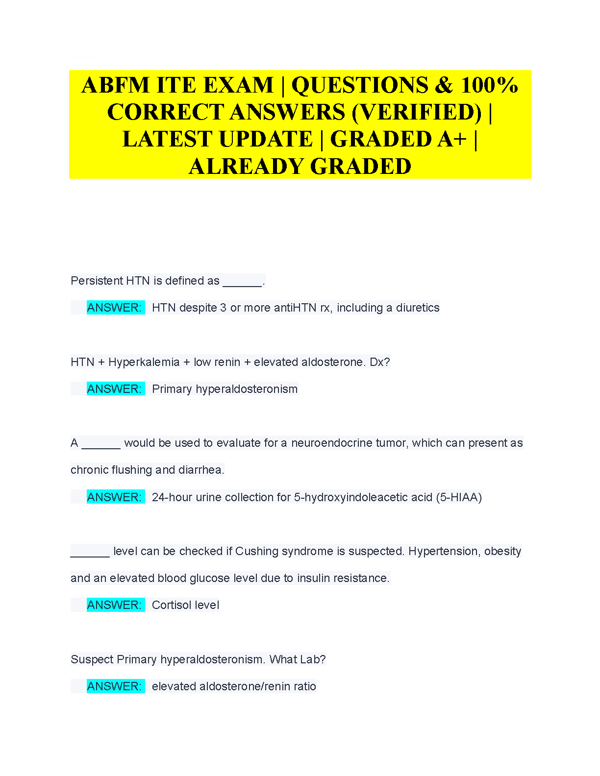 Master the ABFM ITE Exam: A Comprehensive Test Bank with 100% Correct & Verified Questions and Answers (Graded A+)
