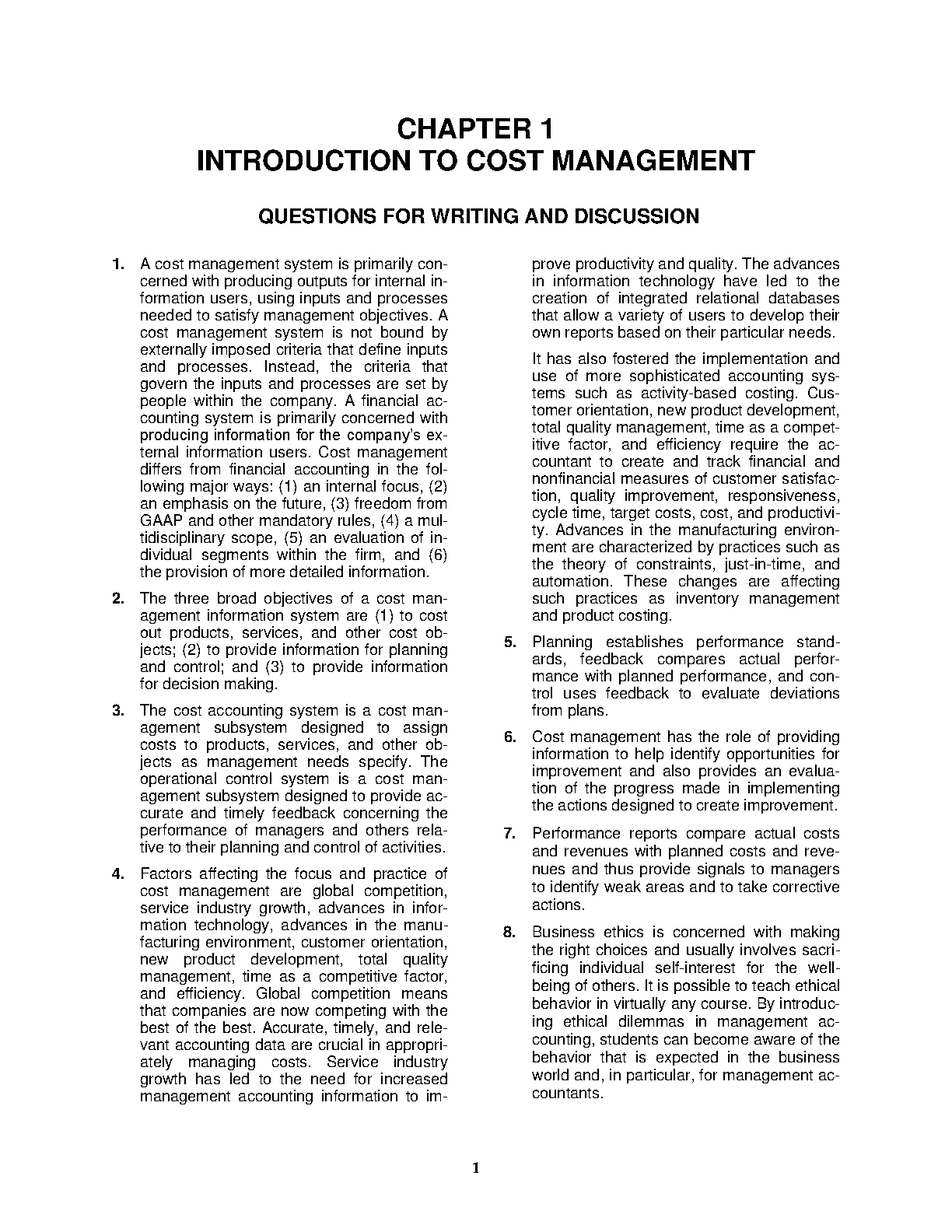 Solution Manual for Cost Management: A Strategic Emphasis, 8th Edition by Edward J. Blocher, David E. Stout, Paul E. Juras, and Steven D. Smith