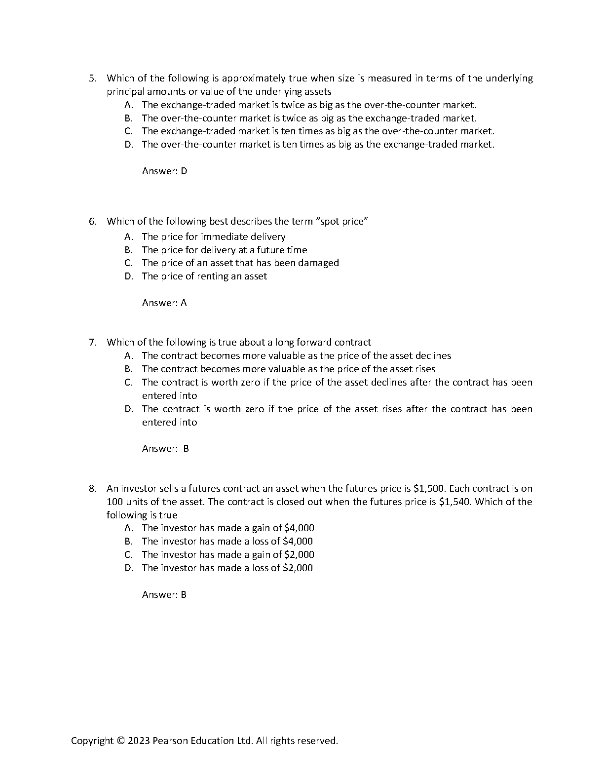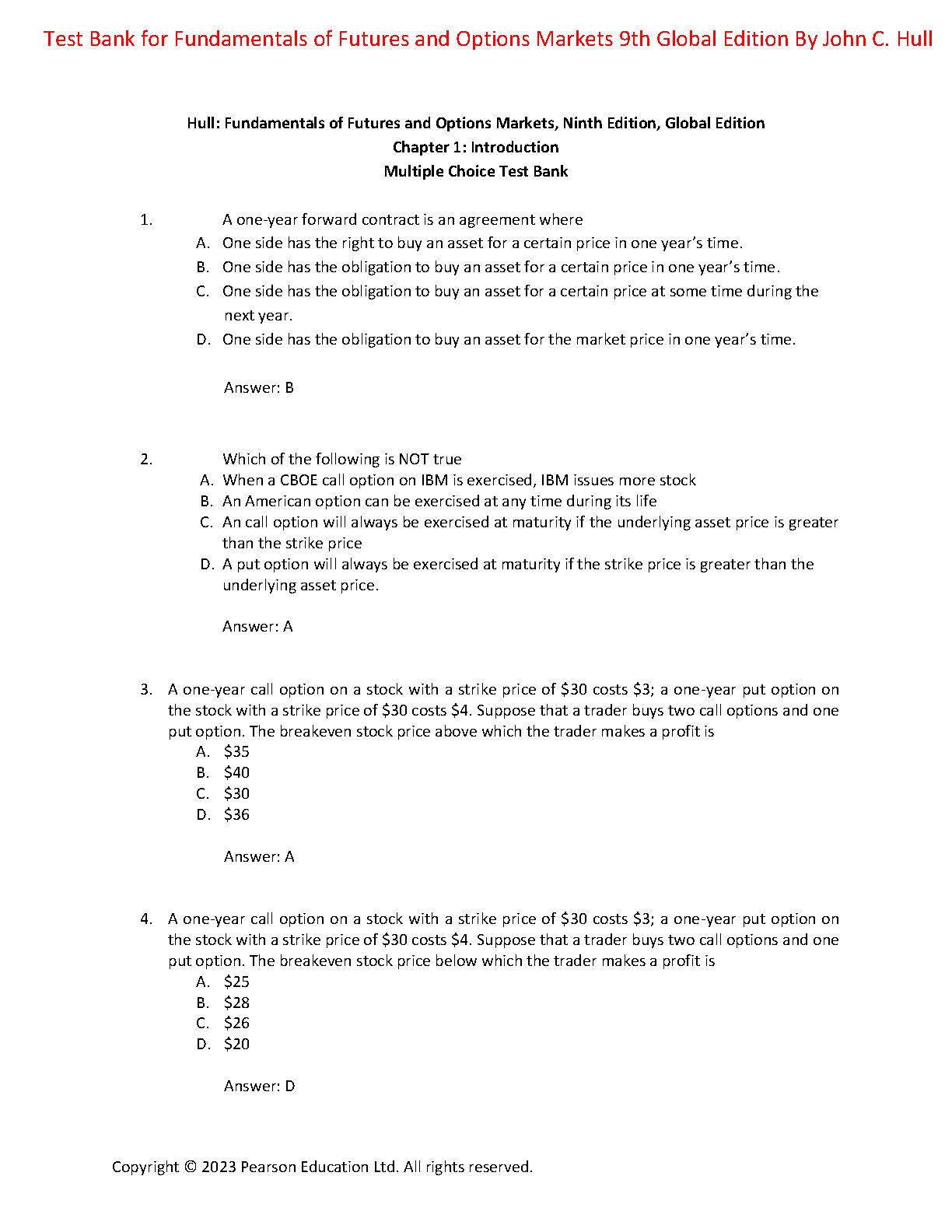 Gain a competitive edge in your finance course with the official Test Bank for 'Fundamentals of Futures and Options Markets, 9th Global Edition' by the renowned author John C. Hull. This comprehensive resource is packed with exam-style questions and detailed answers covering all chapters of the textbook. It's the ultimate study tool designed to help you master complex concepts in derivatives, test your knowledge, and prepare effectively for your exams. Download now to ace your tests and solidify your understanding of futures and options markets.