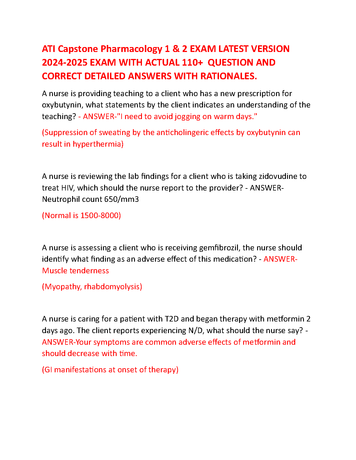 Excel in your nursing studies with the definitive 2024-2025 Test Bank for the ATI Capstone Pharmacology 1 & 2 Exam. This essential study resource provides over 110 actual exam questions, each paired with a verified answer and in-depth rationale. By understanding the reasoning behind each correct choice, you'll develop the critical thinking skills necessary to master complex topics such as drug interactions, adverse effects, and patient teaching. This guide is perfectly tailored to help you pass your exams confidently on the first attempt. Unlock your potential and secure top grades with this comprehensive and reliable preparation tool.