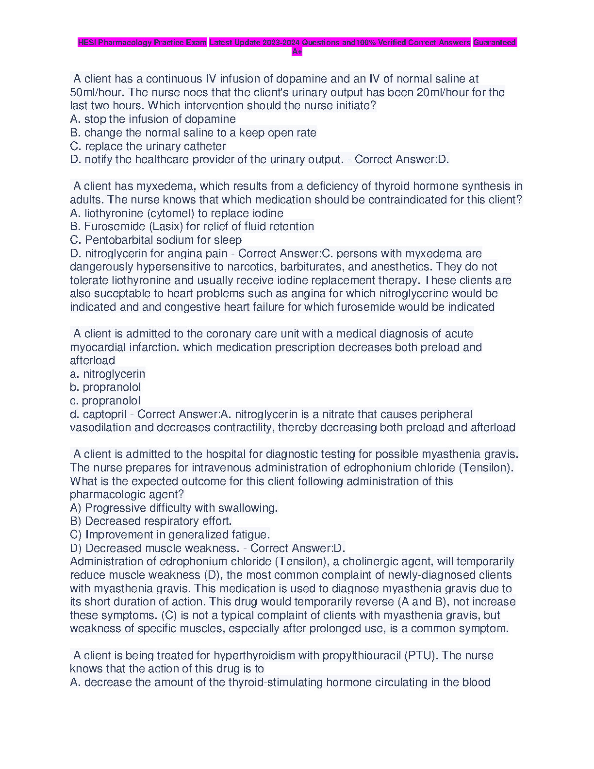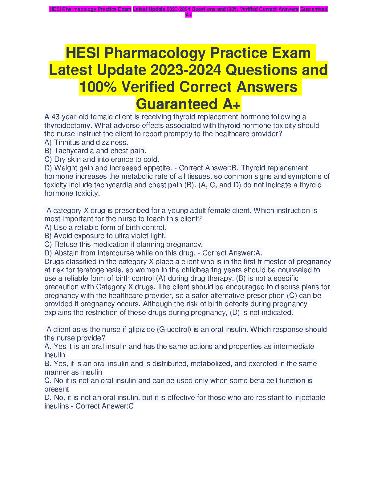 Prepare to excel on your nursing exams with the ultimate HESI Pharmacology Test Bank for the 2025/2026 academic year. This guide is packed with the latest practice questions and 100% verified answers, complete with detailed rationales to deepen your understanding. It's the perfect resource to help you master complex pharmacology concepts, boost your confidence, and secure an A+ grade on your first attempt, making exam resits a thing of the past.