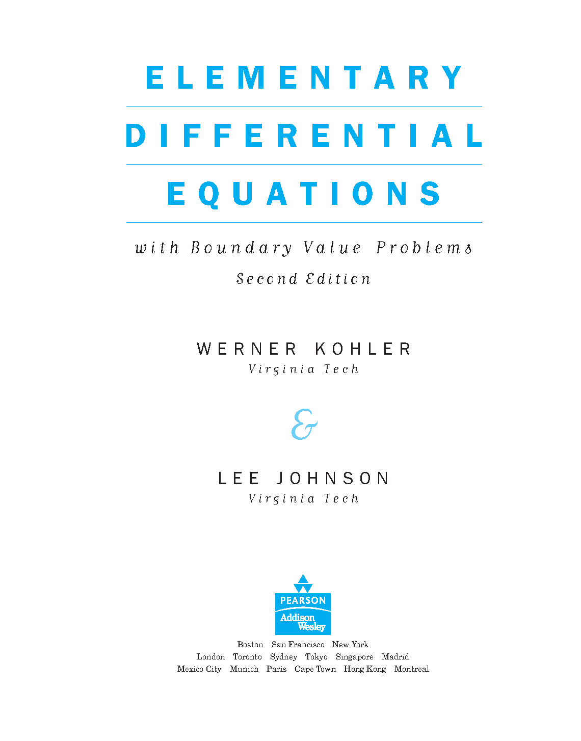Test Bank for Elementary Differential Equations with Boundary Value Problems, 2nd Edition by Werner Kohler and Lee W. Johnson