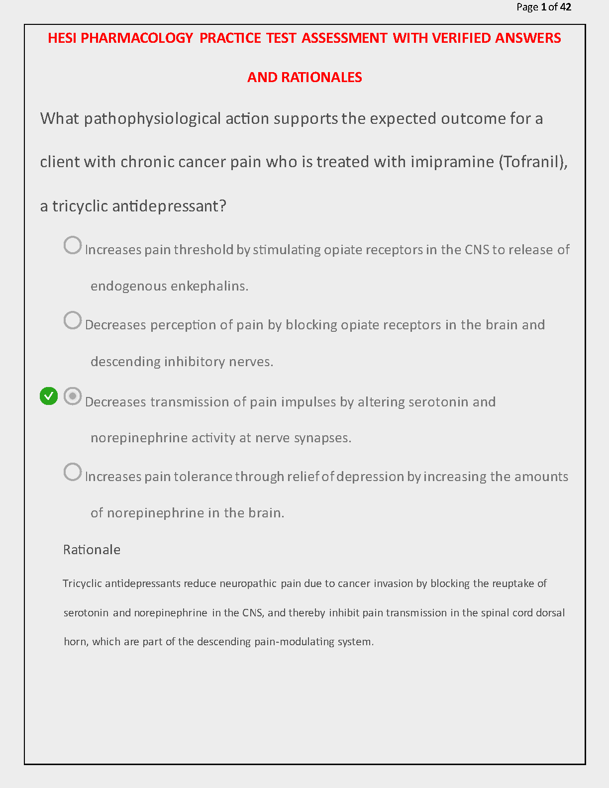 HESI Pharmacology Exit Exam Test Bank [2025/2026 Edition]: Verified Questions, Answers, and Rationales for First-Attempt Success