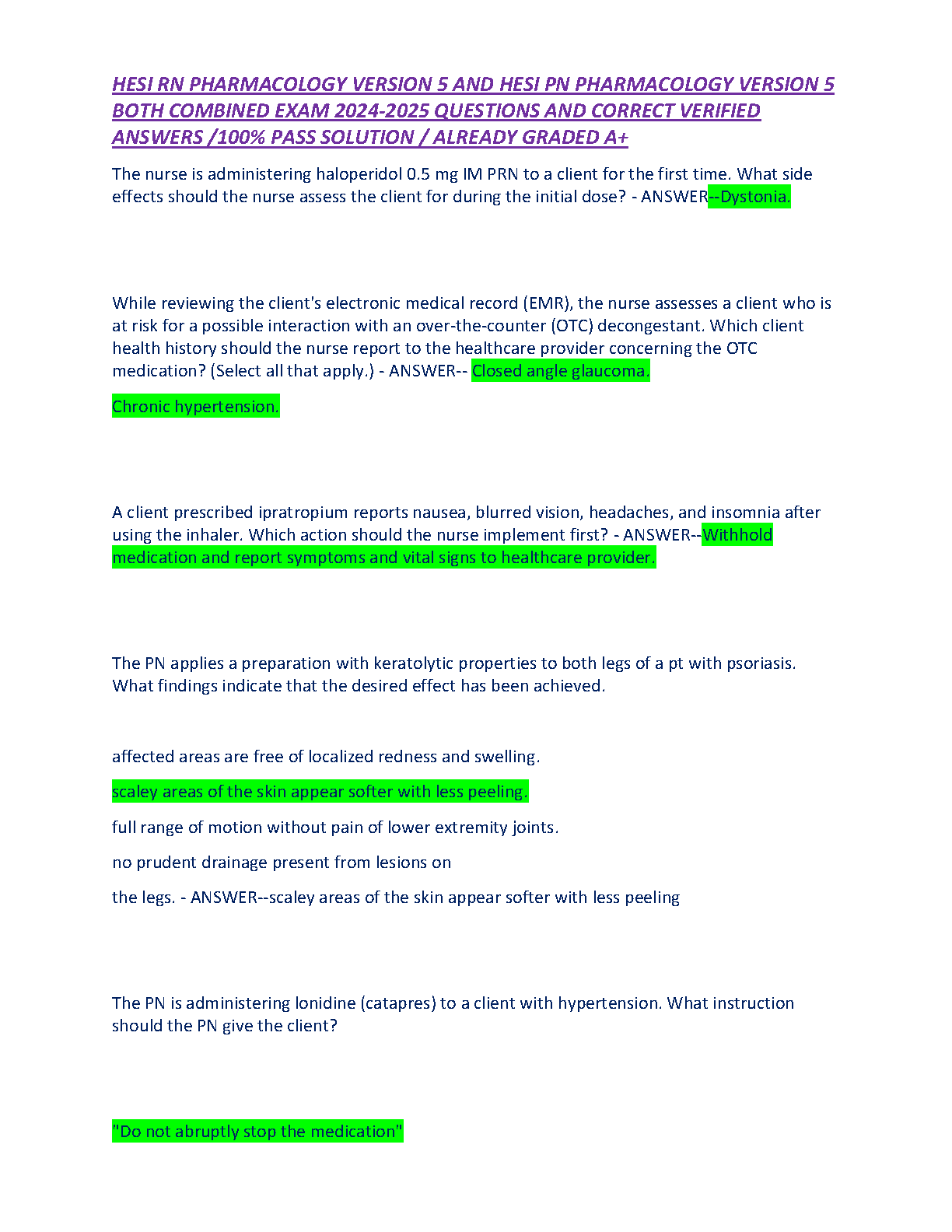 Unlock success in your nursing pharmacology exams with our comprehensive test bank for the HESI RN & PN Pharmacology Version 5 exams. This combined resource for the 2024-2025 testing cycle provides a complete set of questions with 100% correct, verified answers. Designed to guarantee a pass and help you achieve an A+ grade on your first attempt, this guide covers all essential topics. Master key pharmacology concepts, understand drug interactions, and build the confidence you need to excel. This solution is already graded and verified, saving you time and ensuring you study the most accurate and up-to-date material.