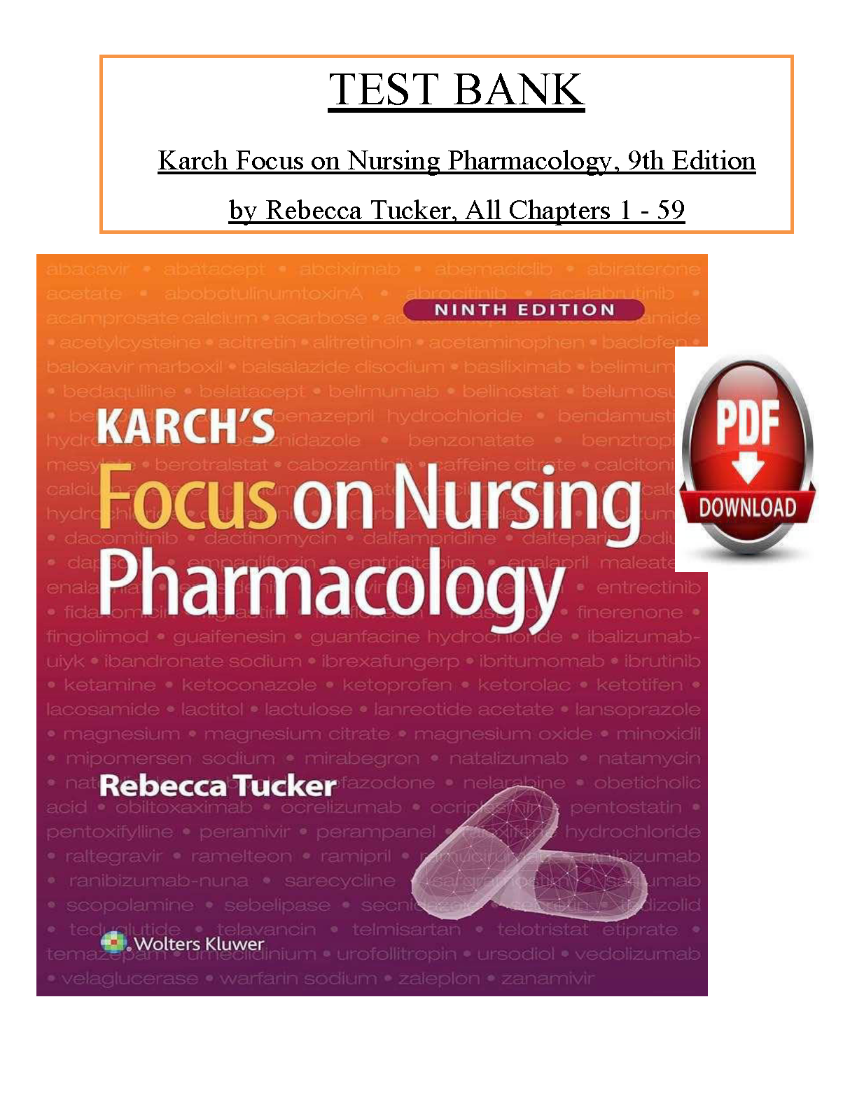 Test Bank for Karch's Focus on Nursing Pharmacology, 9th Edition by Amy M. Karch & Rebecca Tucker